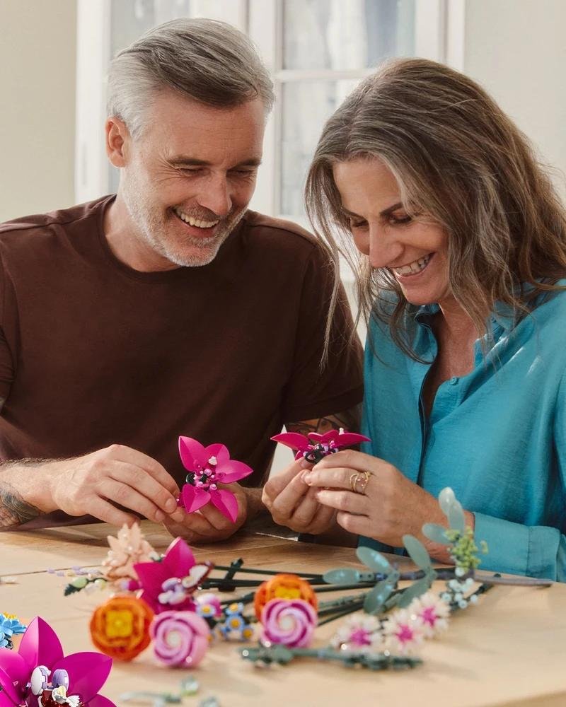 Cultiva la creatividad con el kit de construcción para adultos LEGO® Botanical Ramo de Flores Fantasía en Rosa (10342). Este set de decoración floral LEGO, lleno de flores realistas en preciosos colores que nunca se desvanecerán, es un cautivador regalo para ellas, para ellos y para amantes de la naturaleza. Los floristas aficionados podrán relajarse y desconectar mientras construyen el ramo, formado por 15 flores LEGO con tallo: margaritas, acianos, eucalipto, flores de saúco, rosas, ranúnculos, orquídeas barco, una dalia nenúfar y una campanilla. Los tallos son ajustables, lo que invita a los constructores a crear un ramo a medida que puedan usar como decoración floral en casa o la oficina. Diseña arreglos más grandes y exclusivos combinándolo con otros ramos LEGO, a la venta por separado. Ideales como regalo para el Día de la Madre, el Día de San Valentín o la fiesta de inauguración de una casa, sus destinatarios seguro que guardarán como un tesoro estas flores LEGO personalizables.