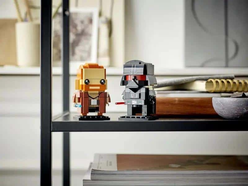 Emblemáticos personajes de Star Wars™ al estilo LEGO® BrickHeadz™: Figuras LEGO BrickHeadz construibles de Obi-Wan Kenobi y Darth Vader (40547) con espadas láser.