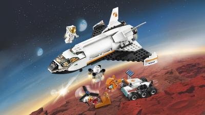 «¡La Agencia Espacial de LEGO® City te necesita! Participa en una emocionante misión espacial de ladrillos LEGO para niños al planeta Marte. Despega en la lanzadera y pon rumbo a Marte para investigar un poco. Pilota el róver sobre la superficie para recuperar las geodas, súbelas después al dron de carga y mándalo de vuelta a la bodega de carga de la lanzadera. Mientras, envía el dron explorador a esa interesante porción de terreno; ¿qué ves? ¡Otra operación completada con éxito de la Misión Expedición a Marte! Oye, ¿sabías que este set está basado en auténticas misiones de la NASA? Qué guay, ¿verdad?»