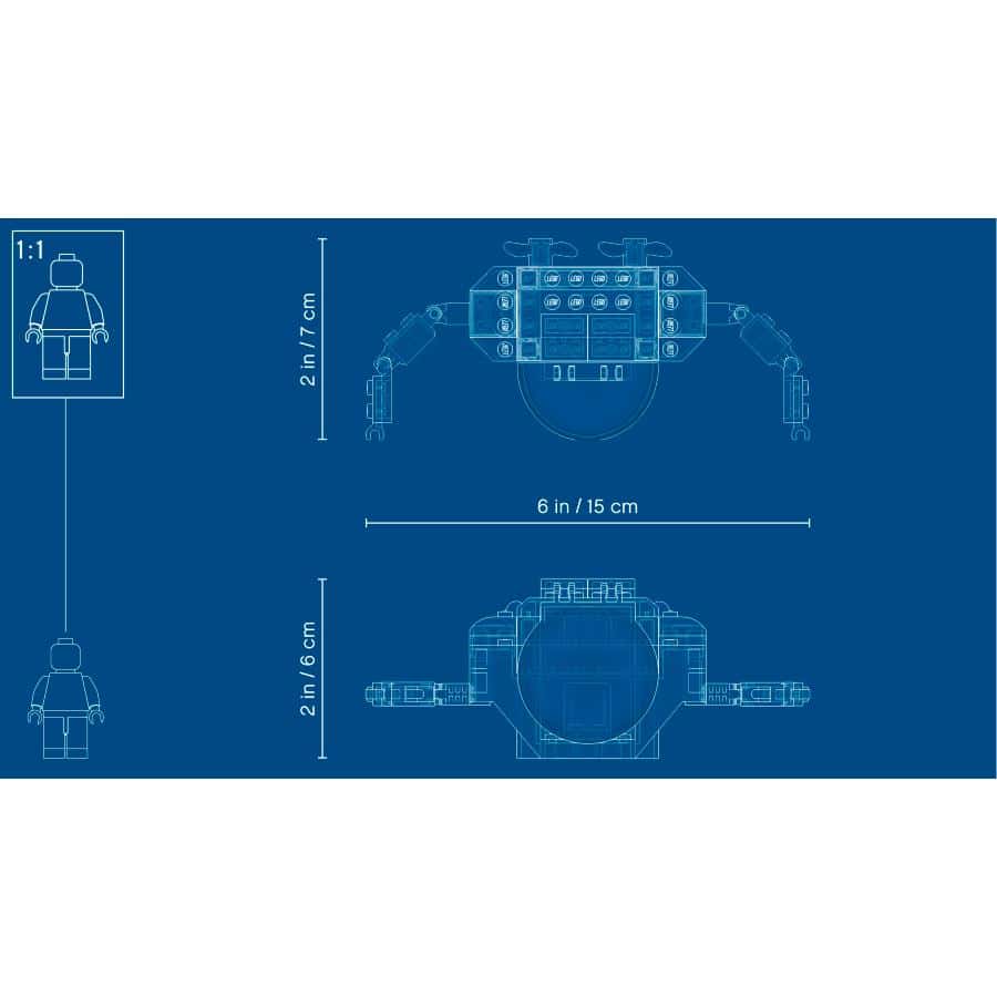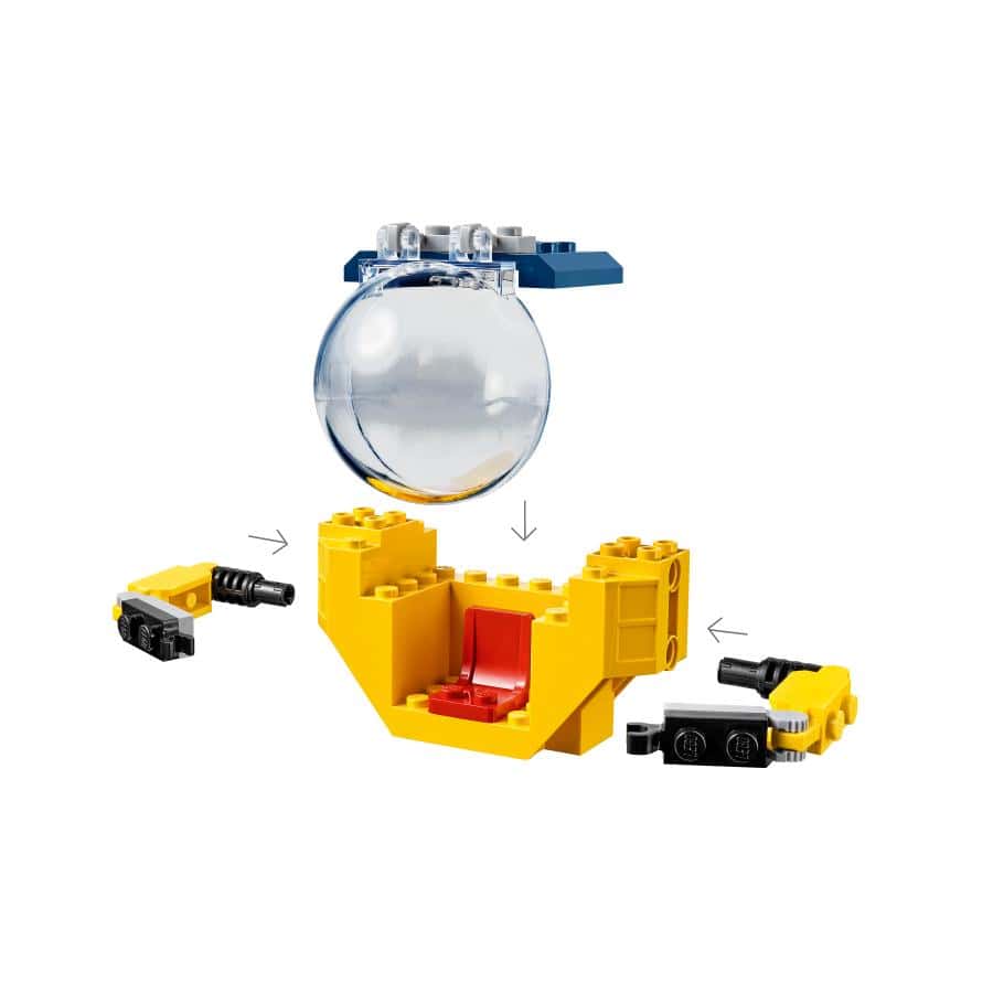 • ¿Qué contiene la caja? Un simpático submarino de exploración de juguete, una escena ambientada en el lecho del mar con un cofre del tesoro pirata y elementos que representan gemas, una minifigura de un piloto y una figura de un pez martillo. Todo lo que los peques necesitan para jugar derrochando fantasía bajo las olas.