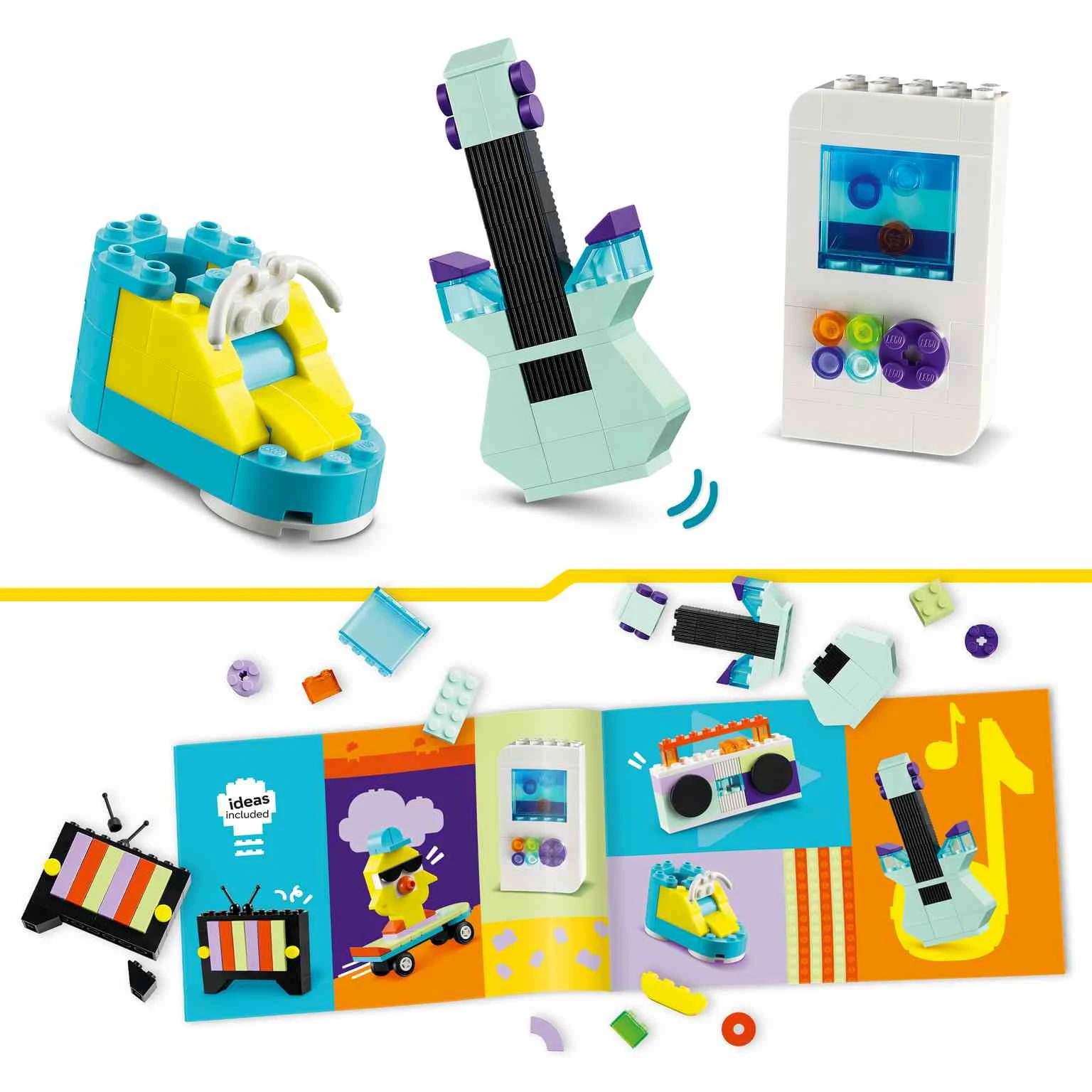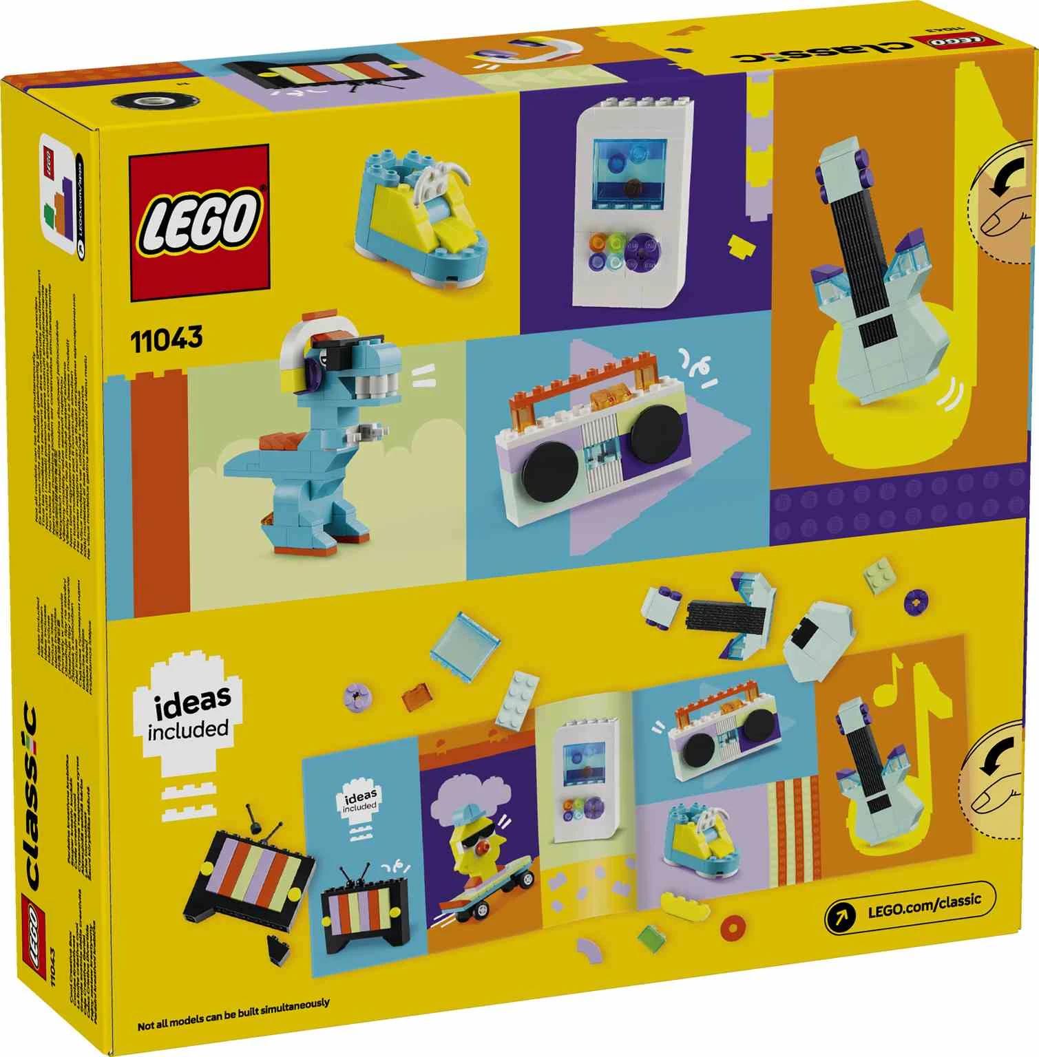 La Caja Creativa Genial LEGO® Classic (11043) viene repleta de modelos para construir y jugar que darán alas a la imaginación de los peques. Con 510 ladrillos de vivos colores, además de ruedas y otros elementos especiales, los niños y las niñas apartir de 5 años podrán crear y combinar no solo una amplia variedad de juguetes de moda, sino también sus propias creaciones llenas de imaginación. Los montones de coloridos ladrillos, así como los ojos, las ruedas y las bisagras, potencian al máximo la experiencia de juego de este versátil set. Da forma a un mando de videojuegos, un dinosaurio con gafas, un teléfono móvil que se abre y se cierra, un monopatín, un camión monstruo, un equipo de DJ con auriculares y más juguetes construibles. Los modelos se pueden combinar y personalizar para pasarlo aún mejor: por ejemplo, puedes ponerle los auriculares al dinosaurio y luego montar al dinosaurio en el monopatín.