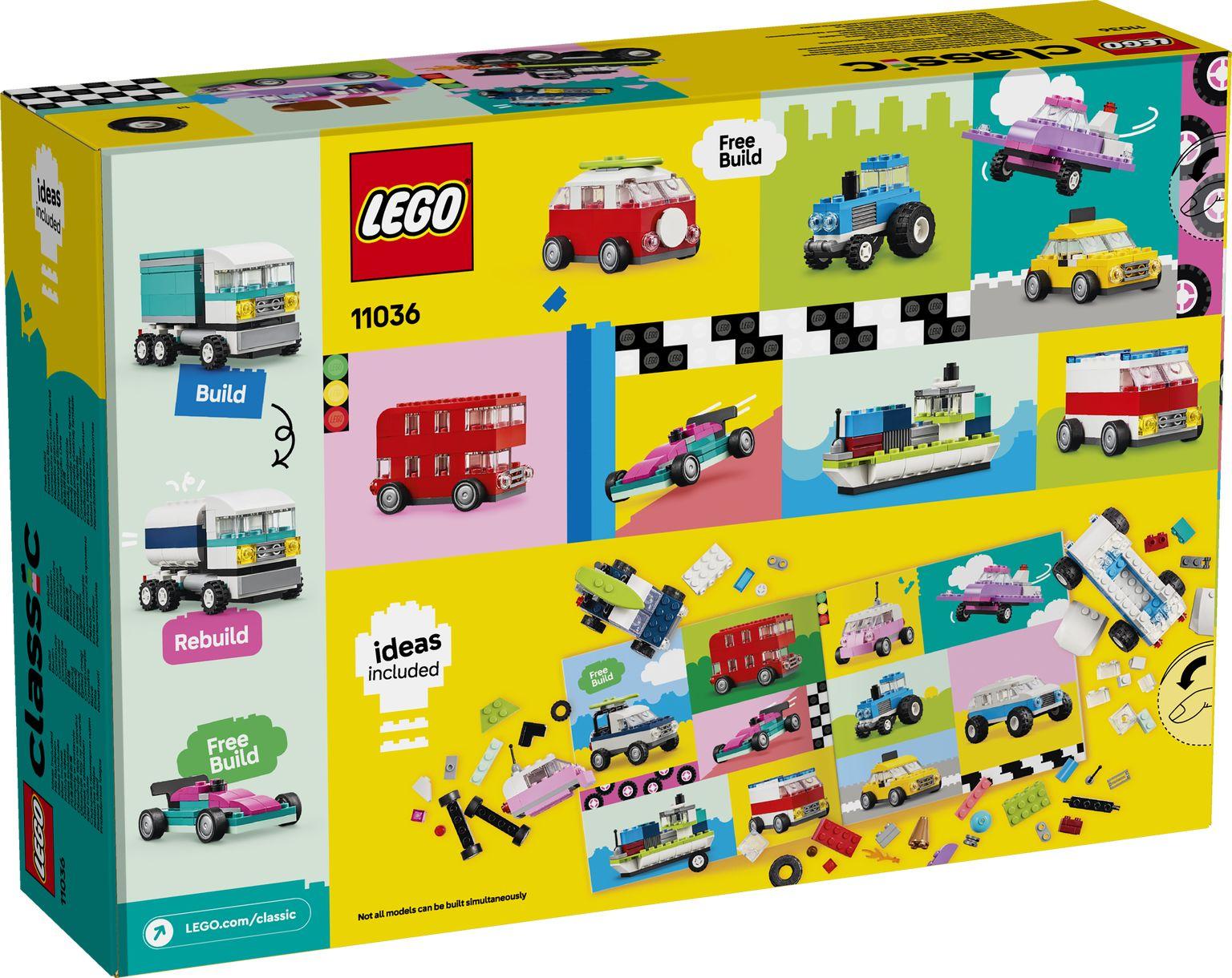 Hazle un gran regalo a tu fan de los vehículos de 5 años o más: ¡el set LEGO® Classic Vehículos Creativos (11036) para construir y jugar! Este colorido kit de construcción de coches contiene un surtido de elementos y ladrillos, así como sencillas guías para crear una serie de vehículos infinitamente reconstruibles. Con 900 ladrillos de construcción, elementos especiales y 52 ruedas, además de instrucciones fáciles de seguir, los peques pueden construir un coche de policía, un camión de los helados, un quad, un cargador frontal, un camión, un coche familiar, un todoterreno y una limusina de juguete. Después, basándose en las ideas sobre diseños, detalles y decoraciones, ¡podrán reconstruir los vehículos de muchas otras formas! Y, a medida que desarrollen sus habilidades de construcción creativa, se atreverán con sus propios diseños inspirándose en las 10 imaginativas ideas incluidas. Las instrucciones también están disponibles en la app LEGO Builder: su intuitiva guía de construcción.