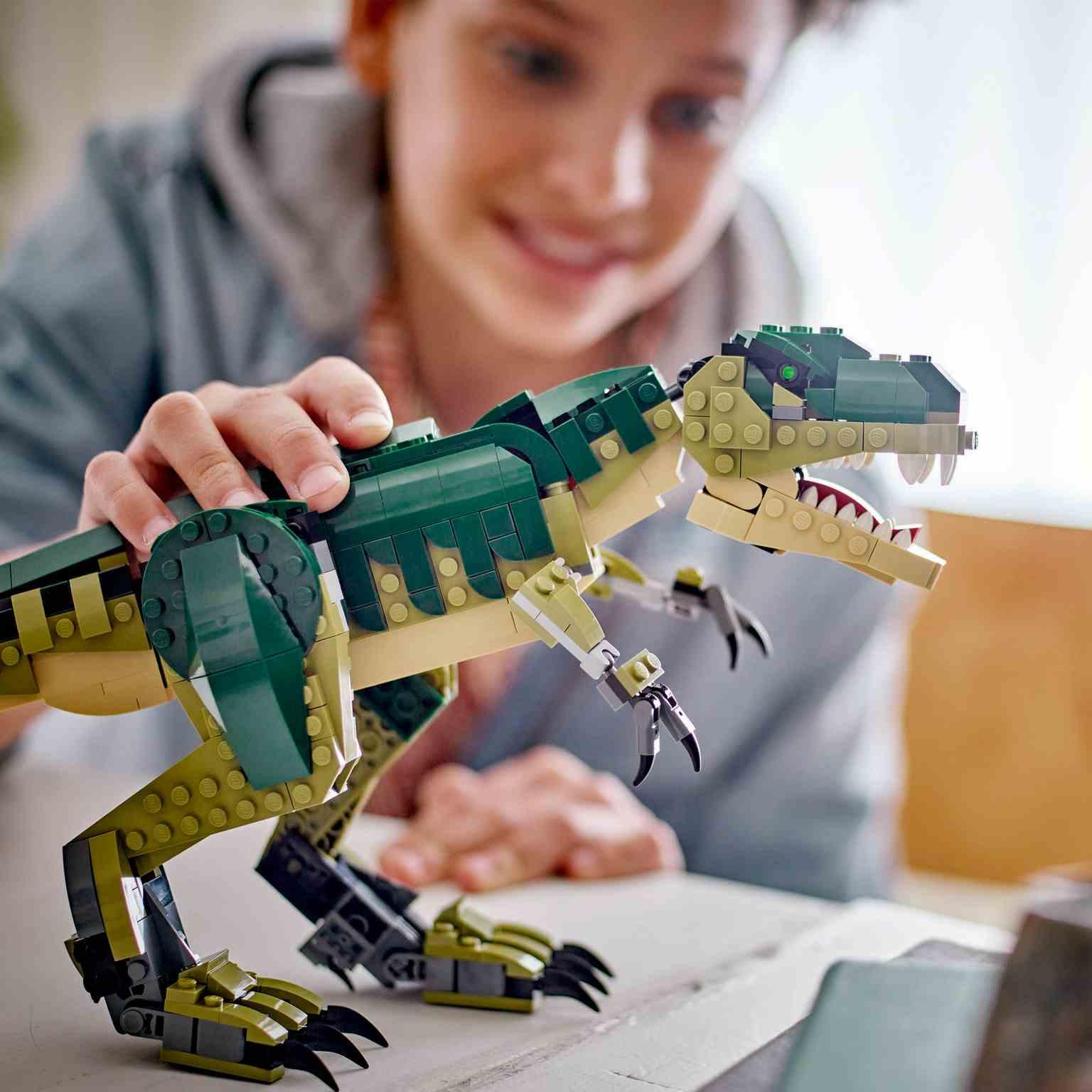 ¡Viaja atrás en el tiempo para interpretar increíbles aventuras con el dinosaurio de juguete T. rex (31151)! Los niños y las niñas de 9 años o más pueden mover la cabeza, los pies, la cola, la mandíbula, las patas delanteras y traseras e incluso los dedos y los talones de este Tyrannosaurus rex articulado para colocarlo en diferentes poses. El T. rex y el nido que lo acompaña, con 2 elementos que representan huevos de dinosaurio, forman una impresionante pieza de exposición. Este set de construcción LEGO® proporciona a los peques un mundo de posibilidades de juego con los 3 dinosaurios de juguete que se pueden construir con los mismos ladrillos: el T. rex articulado, un aterrador Triceratops con 3 cuernos o un Pterodáctilo con grandes alas móviles. Los kits de construcción de juguetes LEGO Creator 3en1 son fantásticos regalos para niños. Cada set 3en1 les permite crear 3 modelos alternativos basados en sus mayores pasiones, desde animales y vehículos hasta detalladas escenas urbanas.