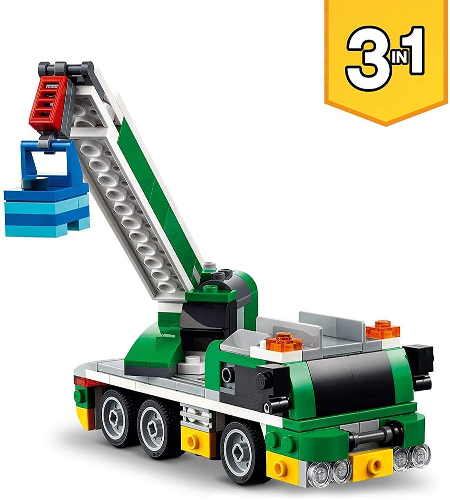 Abre las puertas de un mundo infinito de juego creativo con el fantástico set de juguetes LEGO® Creator 3en1 Transporte de Coches de Carreras (31113), con 3 maquetas en 1: un transporte de coches de juguete, un camión grúa y un remolcador con grúa.