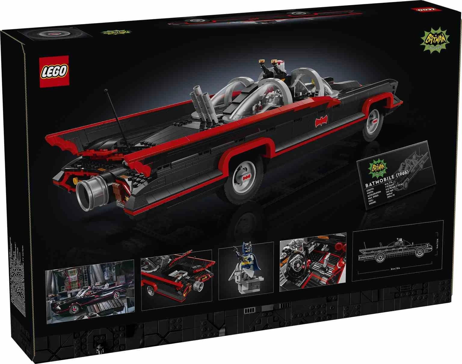 Da vida al legendario Batmóvil de la serie de televisión que empezó a emitirse en 1966 con esta llamativa maqueta diseñada para entusiastas adultos. Incluye fieles detalles, como un parabrisas moldeado, ruedas móviles, adornos y un maletero abatible con el Batordenador. El modelo para construir y exponer viene con una placa de datos sobre el vehículo y una minifigura de Batman™ al estilo de 1966.