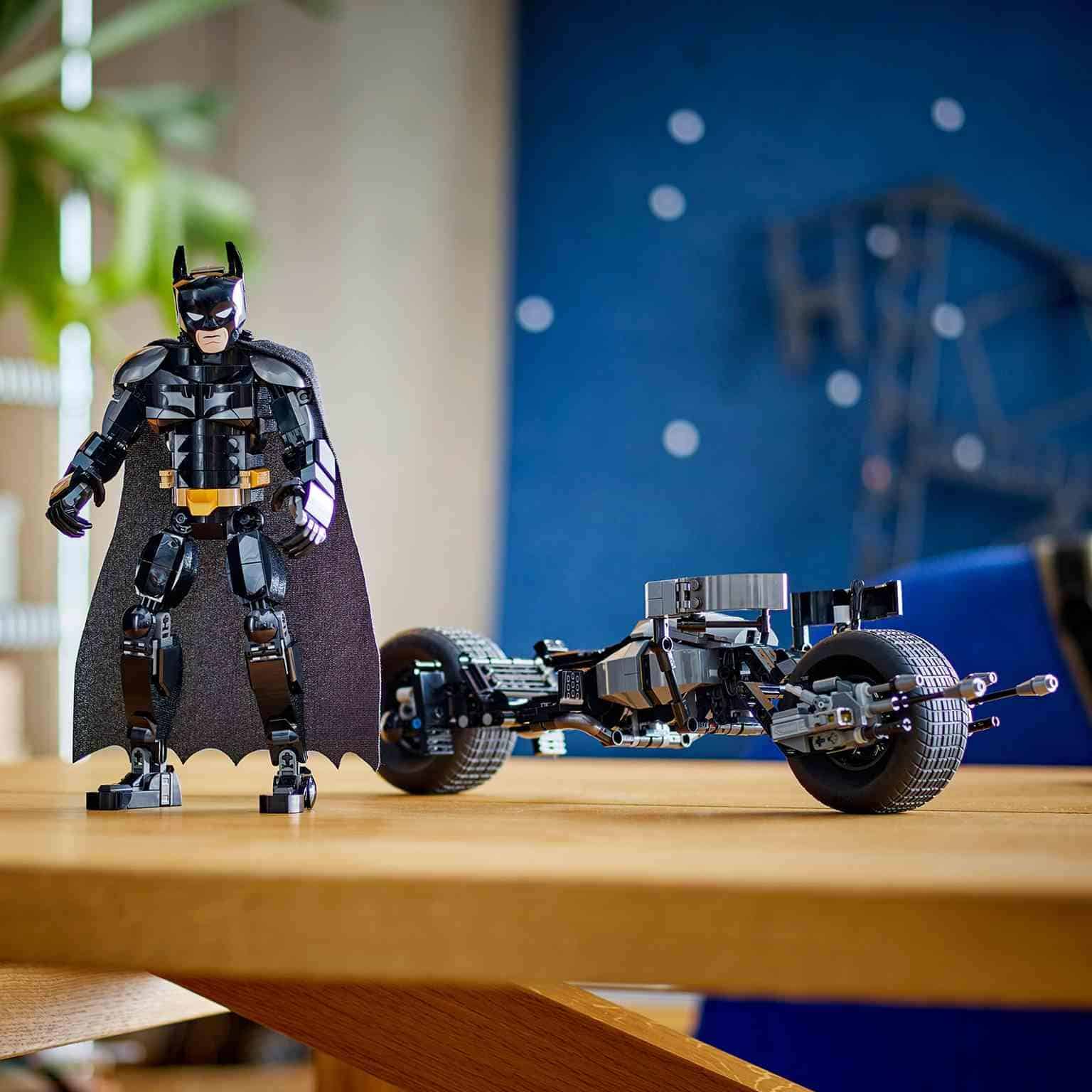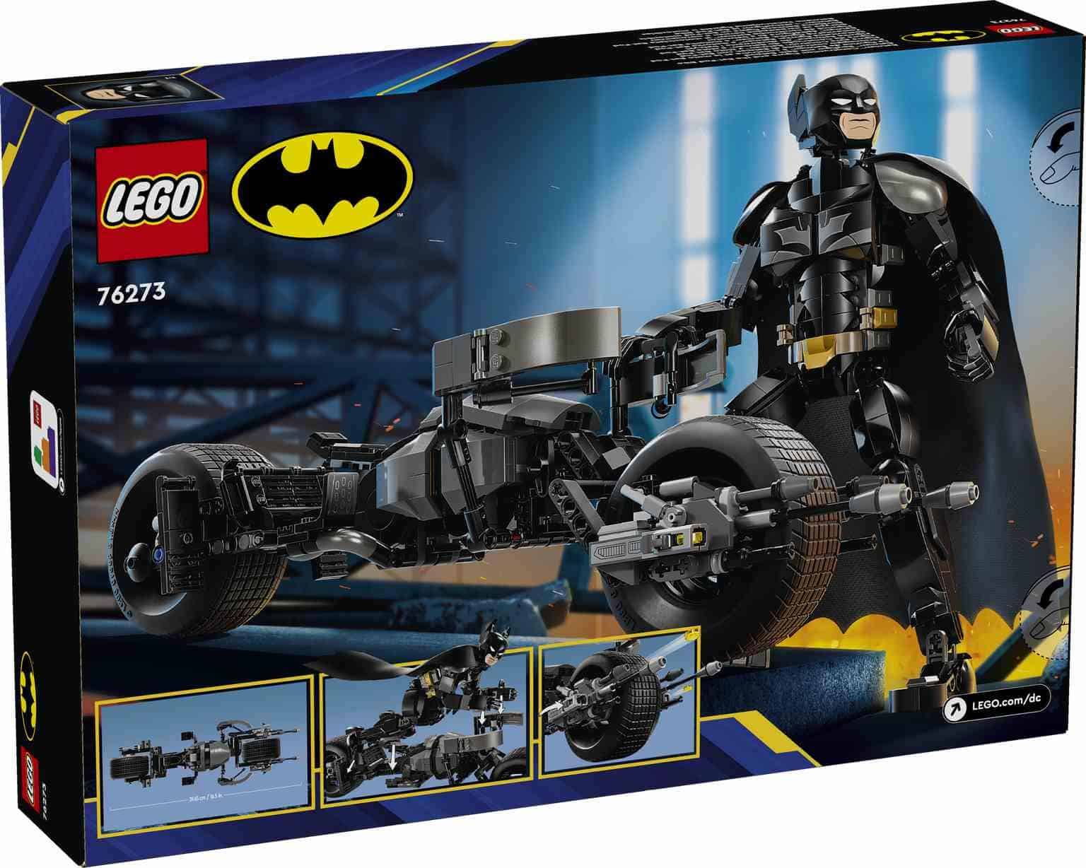 El set LEGO® DC Batman™ Figura para Construir: Batman y Moto Bat-Pod (76273), basado en la película El caballero oscuro, reúne los componentes ideales para cualquier fan del emblemático superhéroe a partir de 12 años. Totalmente articulado y con una altura aproximada de 26 cm, este juguete con detalles de gran fidelidad es tan fantástico como deseable para tu colección. Las articulaciones móviles del juguete en hombros, brazos, caderas y piernas permiten a los peques colocarlo en posturas geniales y crear aventuras dinámicas, ¡por eso esta figura del superhéroe es perfecta para construir, jugar y exponer! La detallada figura de acción de Batman viene con su moto Bat-Pod ultramoderna, equipada con 2 lanzadores. Para disfrutar también de diversión digital, los constructores y las constructoras pueden acercar y girar versiones 3D de sus sets y seguir sus progresos en la intuitiva app LEGO Builder.