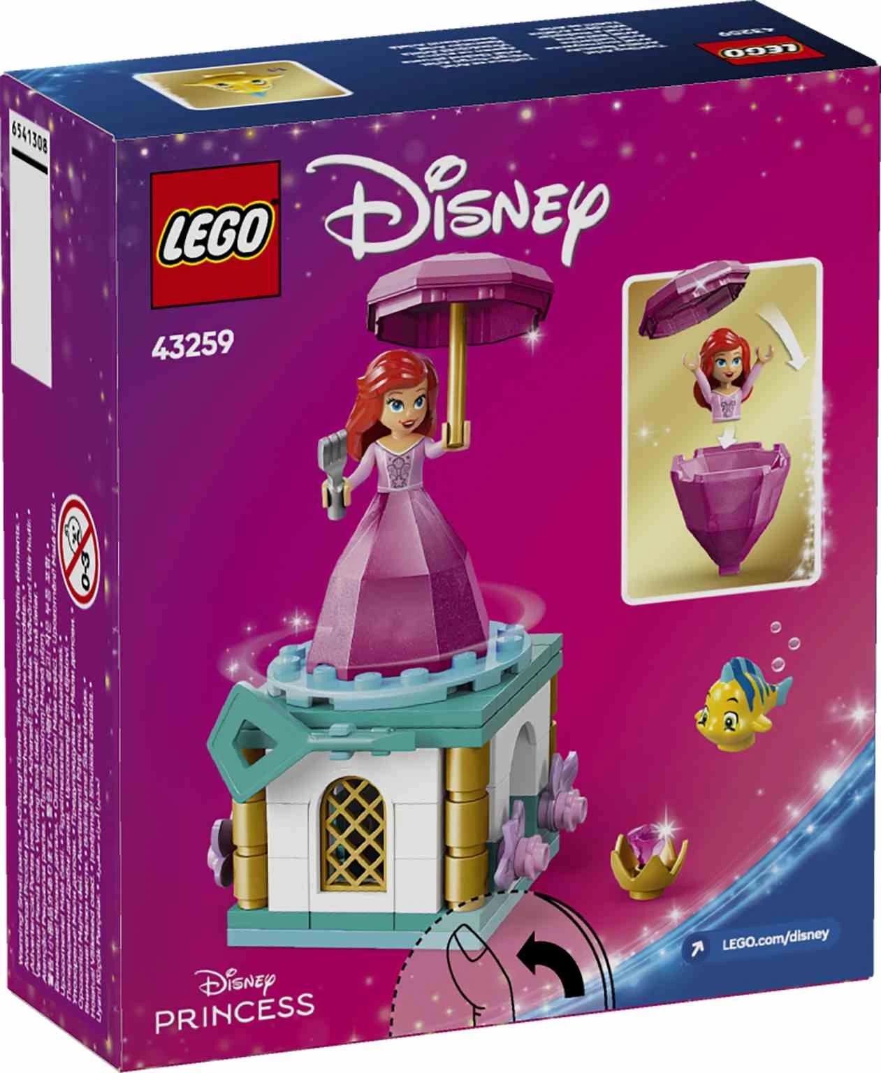 Sorprende a tu peque o a algún fan de La sirenita de Disney a partir de 5 años con el kit de construcción LEGO® ǀ Disney Princess Ariel Bailarina (43259), que incluye una base construible de fantasía con disco giratorio, llave, tenedor, espacio para Flounder y un “diamante” en los laterales. Los peques pueden guardar a Ariel dentro del vestido “diamante”, con el quitasol como tapa para protegerla. Este modelo Disney construible, un divertido regalo para niñas, niños y fans de la película, queda precioso expuesto y es perfecto para entretenerse con él a diario en breves y divertidas sesiones de juego. Los niños se lo pasarán genial usando su creatividad con este set de construcción. Les ayuda a adquirir confianza y desarrollar su imaginación creando sus propias historias. También se puede combinar con otros sets LEGO ǀDisney (a la venta por separado) de la gama. Además, los peques pueden disfrutar de una sencilla e intuitiva aventura de construcción con la app LEGO Builder.