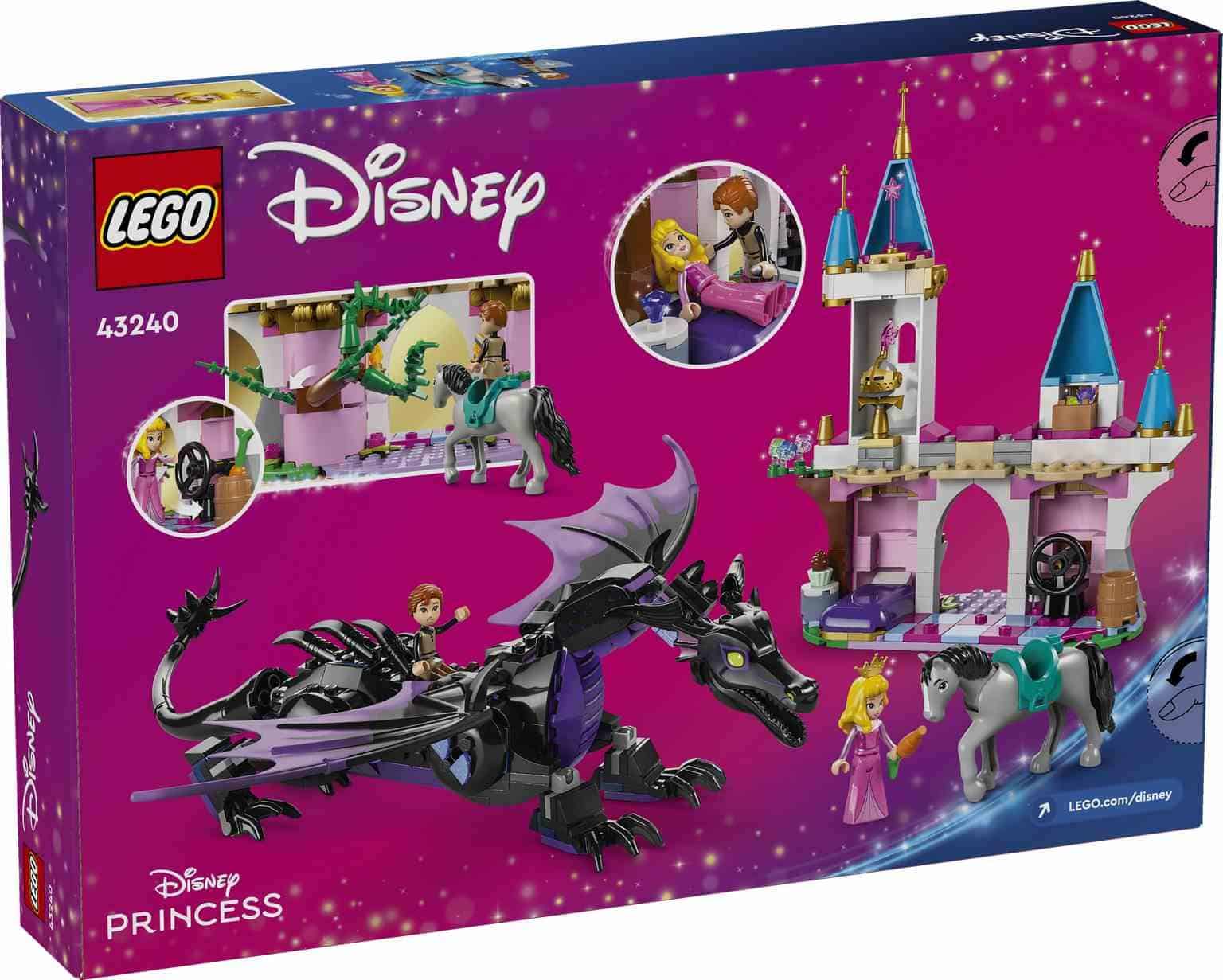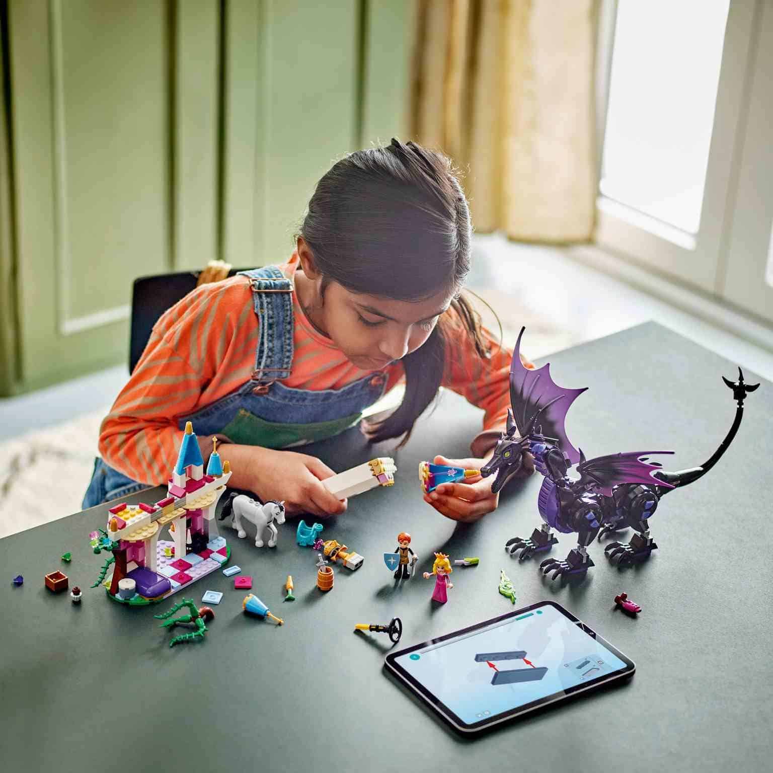 A los peques y los fans de la película Disney La bella durmiente a partir de 7 años les esperan épicas historias con el juego construible LEGO® ǀ Disney Princess Maléfica en Forma de Dragón (43240). El set de construcción es una divertida idea de regalo del universo Disney e incluye un puente con torres y espacio para una cama, una rueca y más accesorios. Cuenta con minipersonajes LEGO ǀ Disney de Aurora y el Príncipe Philip, una figura LEGO ǀ Disney del caballo Sansón y una figura LEGO ǀ Disney articulada de un dragón con alas desplegables y cabeza, patas y cola móviles. Este juego construible diseñado para niñas y niños de 7 años en adelante les ayuda a adquirir confianza en sí mismos mientras crean nuevas historias. Es fácil de llevara las reuniones con amigos y puede combinarse con otros sets LEGO y juguetes de construcción LEGO ǀ Disney de la serie (a la venta por separado). Los peques también pueden disfrutar de una intuitiva experiencia de construcción con la app LEGO Builder.