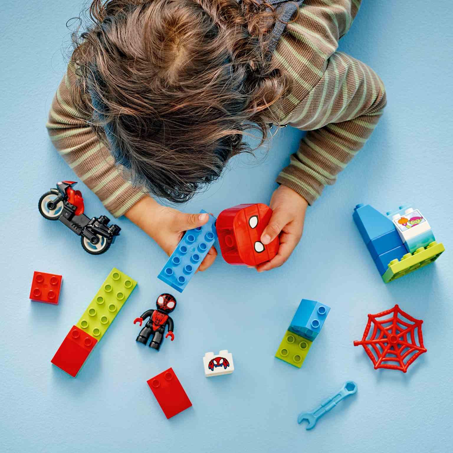 Los bebés se ponen el cinturón y se preparan para emocionantes aventuras de superhéroes con el juego LEGO® DUPLO® Marvel Aventura en Moto de Spin (10424). Este juguete de aprendizaje para preescolares anima a los lanzatelarañas a partir de 2 años a recrear escenas de Spidey y su superequipo, la serie para televisión de Disney+. Perfecto para entretenerse con él a diario en breves y divertidas sesiones de juego, este set de fantasía inspirado en Spidey incluye una figura LEGO DUPLO de Spin, una moto de juguete y un aracnocuartel construible. Los preescolares conducen la moto de Spin por una rampa de juguete construible para lanzarlo directo a la acción. Durante la batalla, los pequeños superhéroes ayudarán a la figura de juguete de Spin aesquivar los ladrillos atrapándolos en su telaraña. Este juguete de aprendizaje para preescolares creativos que fomenta el pensamiento lógico y la adquisición de habilidades motrices finas les ayuda a expresarse y a entender sus propios sentimientos.