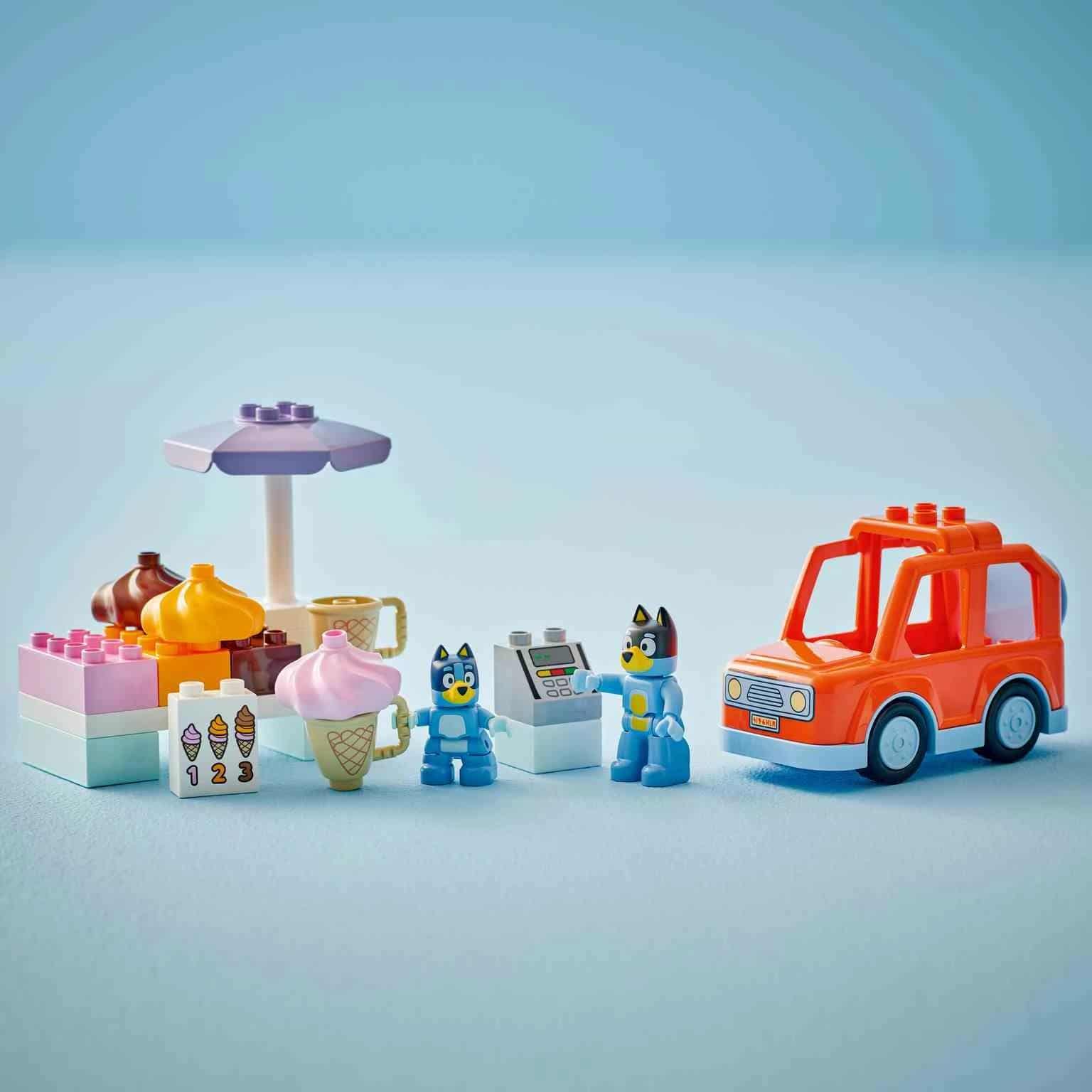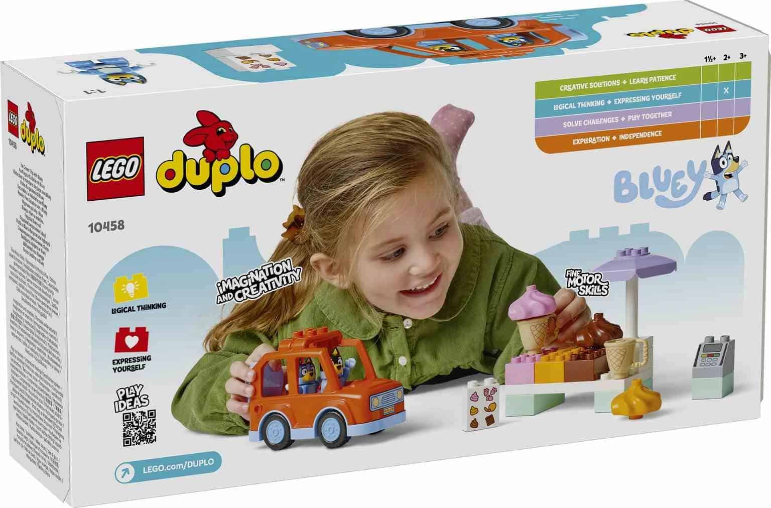 ¡Sumerge a tu preescolar en divertidos juegos con el juguete Excursión a la Heladería con Bluey (10458)! Los bebés practican el juego imaginativo mientras emprenden una aventura LEGO® DUPLO® usando este set para recrear escenas de la serie Bluey. Este regalo para bebés proporcionará horas de diversión en familia. Los peques conducen el coche, con espacio para las figuras de Papá y Bluey, para ir a por helados. El juguete, basado en el juego creativo, les permite interpretar la emoción de viajar a algún lugar especial y también la satisfacción de disfrutar de un antojo. Los bebés empiezan a reconocer los números eligiendo cuántas bolas quieren y apilando la cantidad correcta de ladrillos, aprenden a clasificar por colores emparejando las bolas con los sabores y desarrollan su motricidad fina conectando el helado a los cucuruchos. Los sets LEGO DUPLO Bluey ofrecen al preescolar la oportunidad no solo de interpretar divertidas actividades cotidianas, sino de entender cómo le hacen sentir.