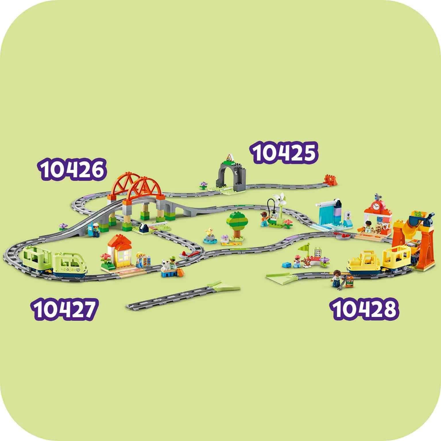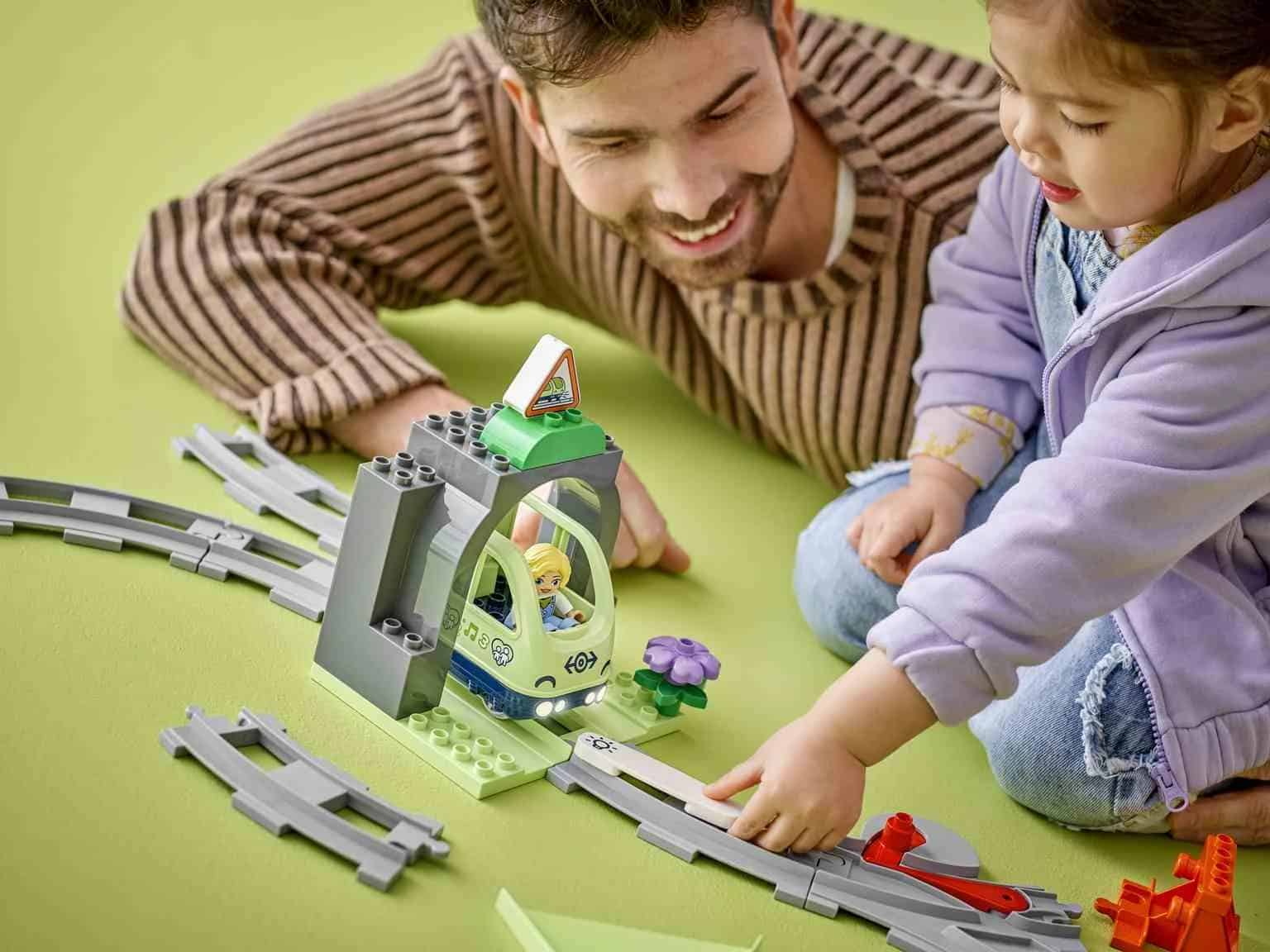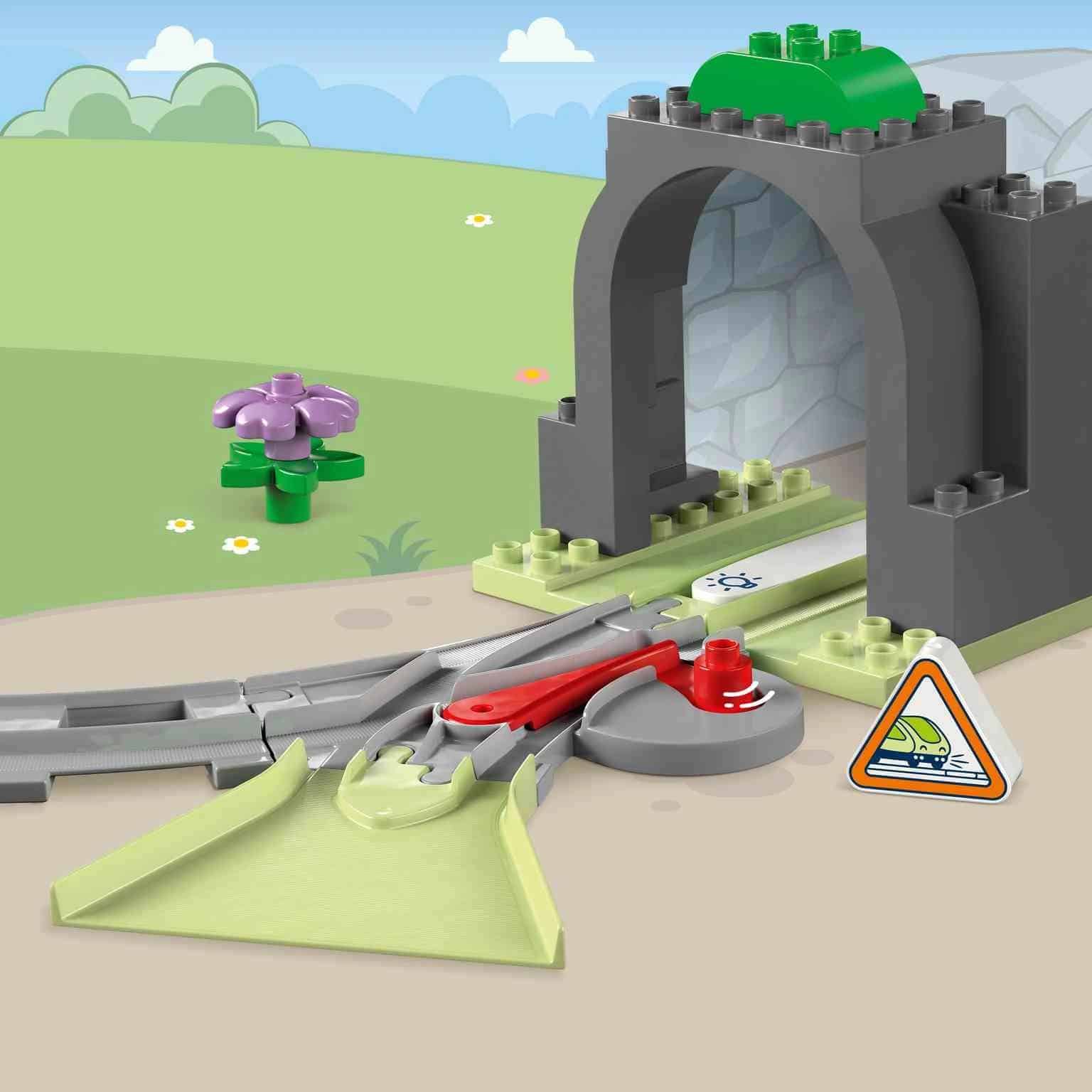 Alarga las aventuras en tren de tu peque con el juguete Set de Expansión: Túnel y Vías Ferroviarias (10425) para bebés. A los preescolares a partir de 2 años les esperan aún más viajes de aprendizaje con solo incorporar un túnel y una vía a sus sets Mi Ciudad LEGO® DUPLO® de trenes interactivos (10427 y 10428, a la venta por separado). Este creativo juguete de construcción viene con un modelo de un túnel y 10 tramos de vía, así como con una chimenea y un cambio de agujas para dar paso al tren en 2 direcciones. El ladrillo de acción ilumina el oscuro túnel cuando lo activan los trenes de los sets 10427 y 10428. Este juguete de aprendizaje infantil fomenta el desarrollo de los peques. Al desplegar la vía por el túnel de juguete, los preescolares trabajan la percepción espacial. Además, usar sus habilidades de resolución de problemas para combinar los tramos y sus habilidades de predicción para determinar el destino del tren permite a los bebés desarrollar paciencia y concentración.