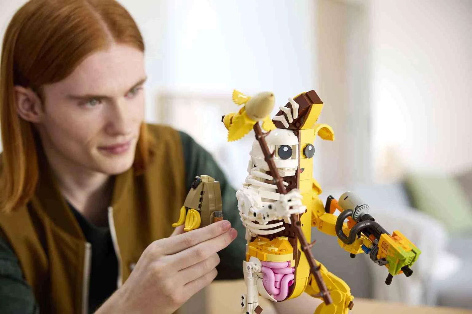 Da vida a una icónica figura del mundo de los videojuegos con el fabuloso kit de construcción para adultos LEGO® Fortnite® Banano pelado (77072), repleto de divertidos detalles que fascinarán a los fans. Inspirado en el videojuego Fortnite, ofrecea los gamers la oportunidad de construir un impresionante modelo de exposición del popular traje. Los fans de Fortnite se sumergirán en una aventura fuera de la pantalla: crear la versión de ladrillos de Banano pelado, mitad plátano y mitad esqueleto. Les encantará descubrir los brazos y muñecas móviles del juguete, así como su fantástico equipamiento, como el pico pelado, el lanzador de pintura y el accesorio mochilero petate de potasio. El set incluye también una base con placa de identificación para que los gamers expongan la figura de Banano cuando la terminen. La figura, un regalo muy acertado para videojugadores y fans de Fortnite, se convertirá en una pieza LEGO decorativa que desbloqueará el nivel de la felicidad allí donde se exponga.