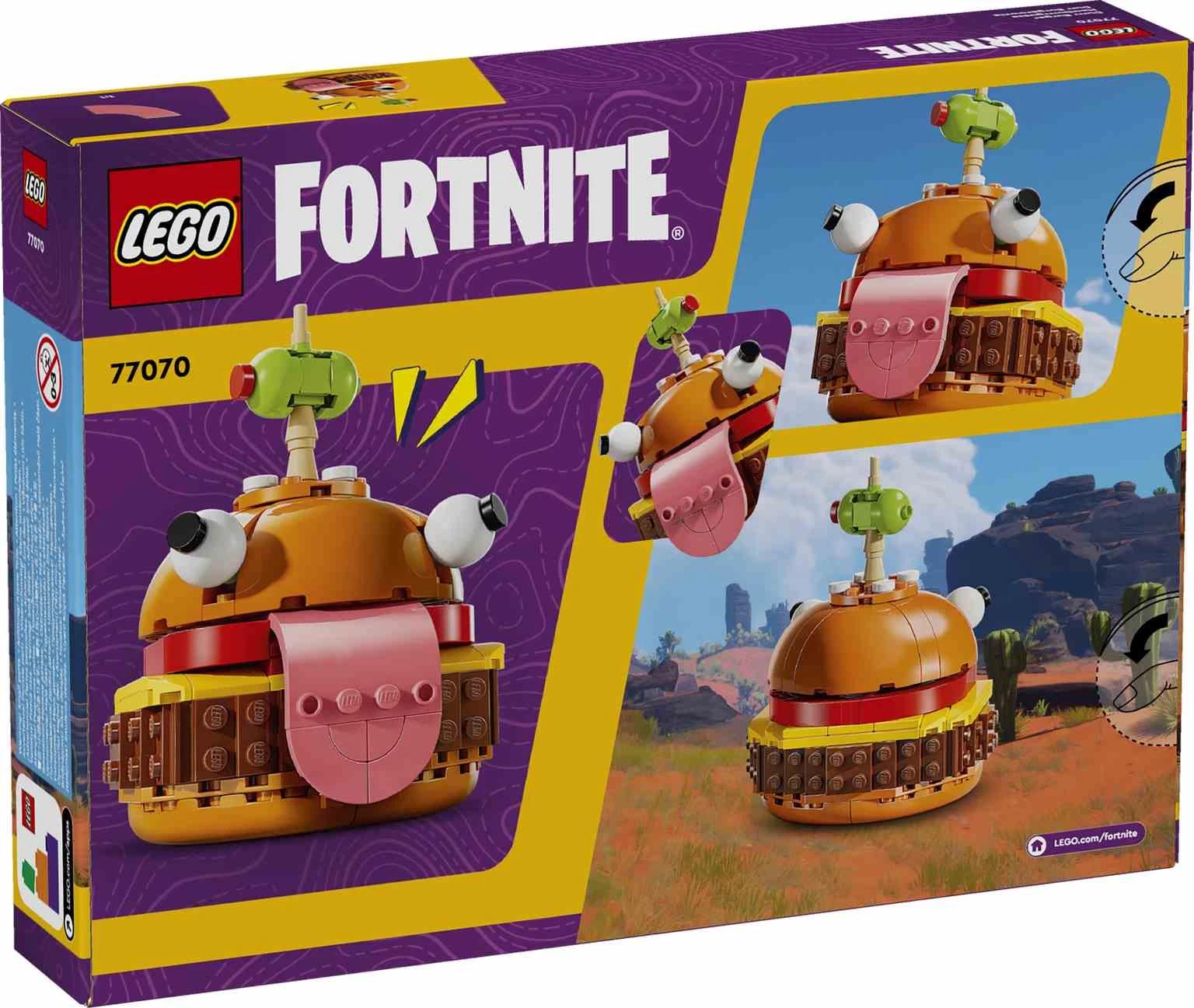 Alimenta la creatividad con la Hamburrrguesa LEGO® Fortnite® (77070), un fantástico set de construcción para gamers a partir de 9 años. Basado en el videojuego LEGO Fortnite, el set ofrece a los fans la oportunidad de crear un modelo de exposiciónde Hamburrrguesa, la icónica mascota del restaurante del universo Fortnite. A los jóvenes gamers les esperan montones de diversión y muchas victorias en su punto construyendo el modelo antes de descubrir emocionantes detalles reconocibles al instante, como los ojos, la lengua y la aceituna en un palillo. Una vez terminado, el modelo del videojuego se convertirá en un sensacional juguete de exposición coleccionable que los niños se sentirán orgullosos de mostrar en su habitación o en su cuarto de juegos. Ideal como regalo para pequeños entusiastas de los videojuegos y fans de Fortnite de todas las edades, seguro que esta preciada pieza de decoración al estilo LEGO desbloqueará la alegría del juego allí donde la expongas.