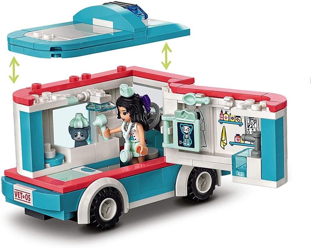 La ambulancia mide aproximadamente 8 cm de altura y 12 cm de longitud, un tamaño perfectamente portátil para jugar a rescatar mascotas en casa o en cualquier lugar. Al ser compatible con otros sets LEGO®, promueve un auténtico juego creativo.