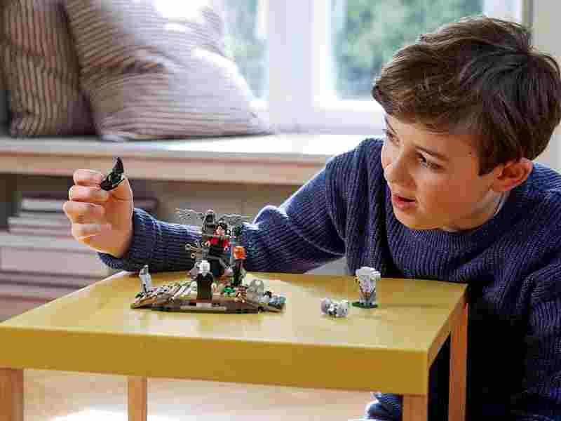 ¡Devuelve a Voldemort™ todo su poder mágico y ayuda a Harry a escapar de sus malvadas garras! Peter Pettigrew ha ayudado a Voldemort a transportar a Harry Potter™ hasta un escalofriante cementerio usando la Copa de los Tres Magos como portal y lo ha atrapado en la lápida de Tom Riddle. ¡Prepara una poción en el caldero y tira de la palanca para que Lord Voldemort aparezca al instante! ¿Escapará Harry del Señor Oscuro y su leal Mortífago? Sólo tú lo puedes decidir mientras recreas esta emocionante escena de Harry Potter y el Cáliz de Fuego™.