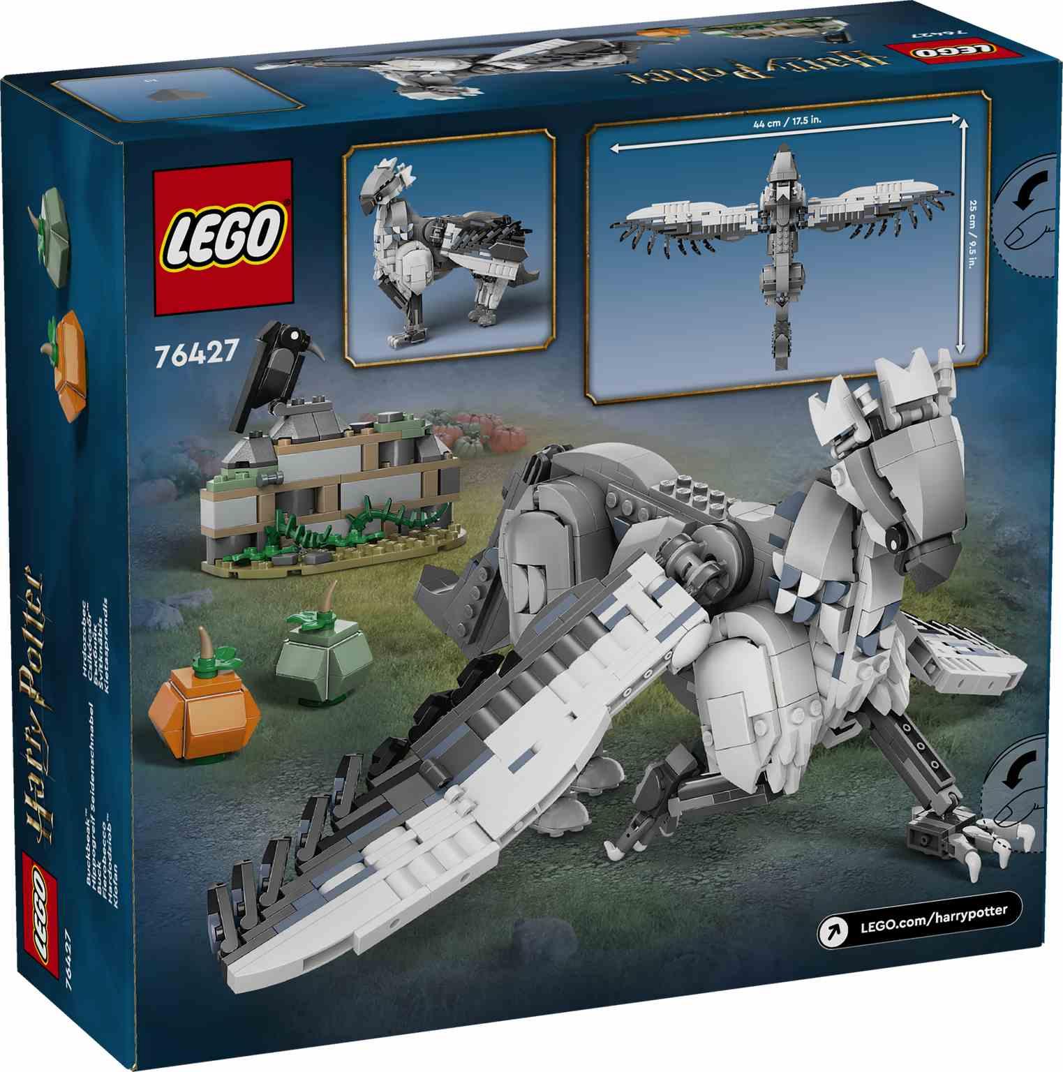 Anima a tu peque a revivir las hechizantes aventuras de Harry Potter™ y crear una alegre pieza de exposición con el juguete Buckbeak™ (76427), el modelo LEGO® más grande del entrañable hipogrifo. Este set, una divertida idea de regalo para niños yniñas a partir de 9 años, incluye una figura de juguete LEGO articulada del mágico animal, además de una pequeña sección construible del huerto de Hagrid con 2 calabazas y una figura de un pájaro para imaginar historias o crear una pieza de exposición. Inclina la cabeza de Buckbeak, despliega sus alas en posturas de vuelo y ajusta las patas como si caminara, se sentara o hiciera una reverencia. Mejora la experiencia de construcción de tu peque con las intuitivas herramientas digitales de la appLEGO Builder. Este juego LEGO Harry Potter coleccionable ofrece a tu joven mago, bruja o Muggle™ una actividad creativa para disfrutar a solas o con amigos y la posibilidad de usar los modelos con otros sets LEGO Harry Potter (a la venta por separado).