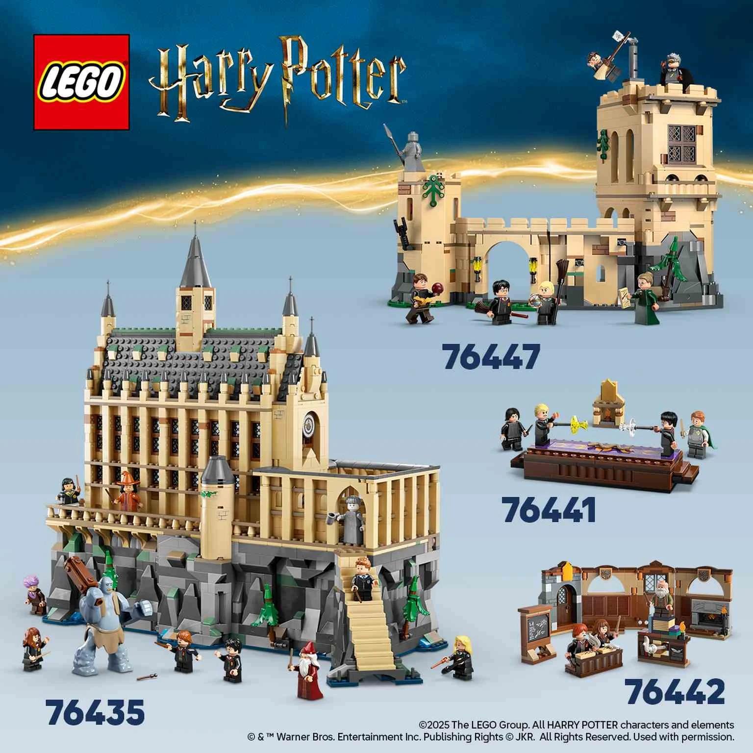 Recrea una fascinante escena de Harry Potter y la cámara secreta™ con el juguete LEGO® Harry Potter™ Castillo de Hogwarts™: Club de Duelo (76441) para mayores de 8 años. Incluye una plataforma donde se baten 2 minifiguras (empuja los escalones para derribar a la minifigura del extremo opuesto), así como 1 cuadro de Hogwarts (de 14 en total) para exponerlo sobre la chimenea. El set cuenta con 4 populares personajes en formato de minifigura LEGO: Harry Potter y Draco Malfoy™ (con varitas y elementos que representan hechizos), y Gilderoy Lockhart™ y Severus Snape™. Este pequeño set, una gran idea de regalo del universo Harry Potter para peques, es fantástico para iniciar a niños, niñas y aspirantes a magos o brujas en el Mundo Mágico de LEGO. Este juego de aventuras pertenece a una colección de juguetes de construcción LEGO Harry Potter modulares (a la venta por separado) que se conectan para crear la escena del Castillo de Hogwarts construida con ladrillos LEGO más detallada hasta ahora.