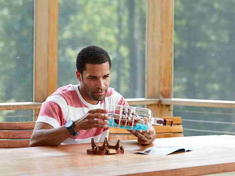 ¡Saca a relucir tu lado más artesano creando este Barco en una botella con ladrillos LEGO®! Construye el precioso buque “Leviathan”, equipado con camarote del capitán, mástiles, cofa, velas, bandera y 6 cañones. Introdúcelo en la botella construida con ladrillos y ciérrala con el corcho para construir y el sello de cera. Luce entonces tu nostálgica creación náutica en el expositor, decorado con una placa con el nombre de la nave y una brújula con aguja giratoria.