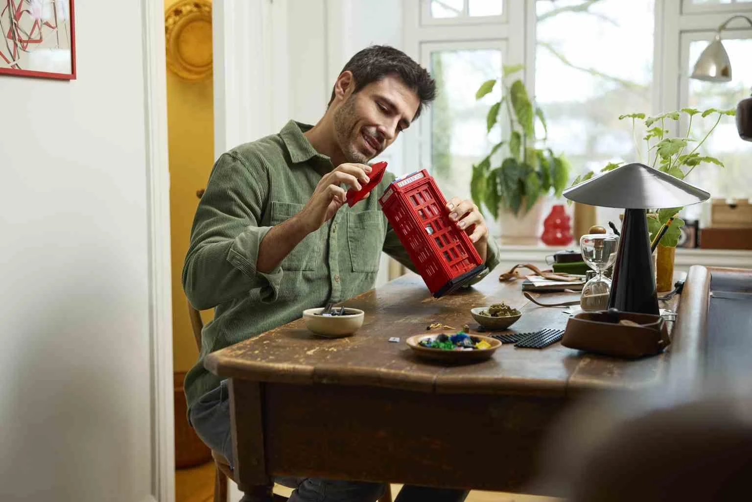 Disfruta de buenos momentos creando con ladrillos una versión de un icono cultural británico: la Cabina Telefónica Roja de Londres (21347). Un nostálgico recuerdo de Londres ideal como regalo para amantes de los viajes y la historia, esta cabina londinense fielmente detallada te ofrece la posibilidad de construir un teléfono de disco retro o uno al estilo de la década de 1980 e incorpora un ladrillo LEGO® con luz que se activa al pulsar el techo de la cabina. La cabina de este set de construcción LEGO Ideas coleccionable para adultos forma parte de una escena que captura la esencia de Londres con su acera adoquinada construible, su farola, sus cestas florales colgantes, su maceta, su valla y su placa con el nombre de la calle. Este modelo de exposición, un encantador adorno para tu casa o tu oficina, también puede usarse como soporte para el móvil. ¿Acabas de descubrir la construcción con LEGO? No importa. Encontrarás instrucciones fáciles de seguir en la caja y en la app LEGO Builder.