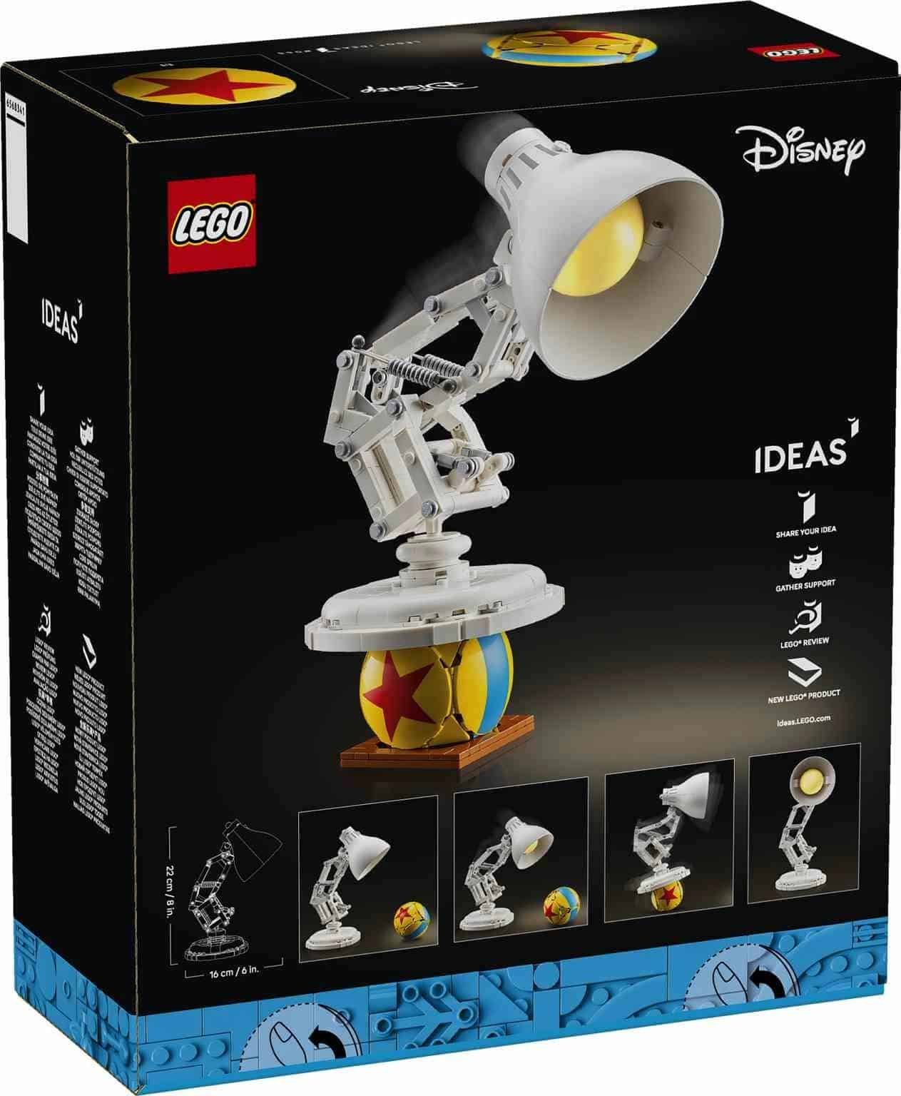 Da forma al simpático y juguetón personaje de la primera película de animación por ordenador nominada a los Óscar con el set de construcción coleccionable para adultos LEGO® Ideas ǀ Disney Pixar Luxo Jr. (21357). Fantástico como pieza de decoración, este modelo de exposición totalmente articulado te permite recrear los rebotes, saltos y giros del personaje. El set incluye también una pelota de Disney Pixar que se abre y contiene sorpresas con guiños a populares películas Disney Pixar: Up, Los Increíbles, Ratatouille, Monstruos, S.A., Toy Story y Buscando a Nemo. Este recuerdo cinematográfico construible es un nostálgico regalo para hombres, mujeres y fans que se han asombrado ante la capacidad de Disney Pixar de dotar a objetos inanimados de movimientos y emociones humanas. Puedes incluso exponer a Luxo Jr. sobre la pelota como si la deshinchara, igual que en el cortometraje de 1986. Las instrucciones de construcción de la caja y la app LEGO Builder te guían en tu viaje creativo.