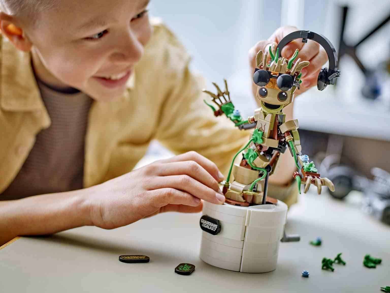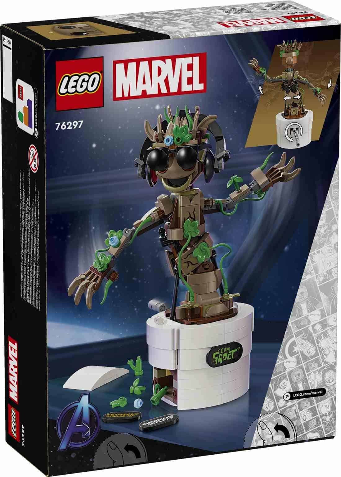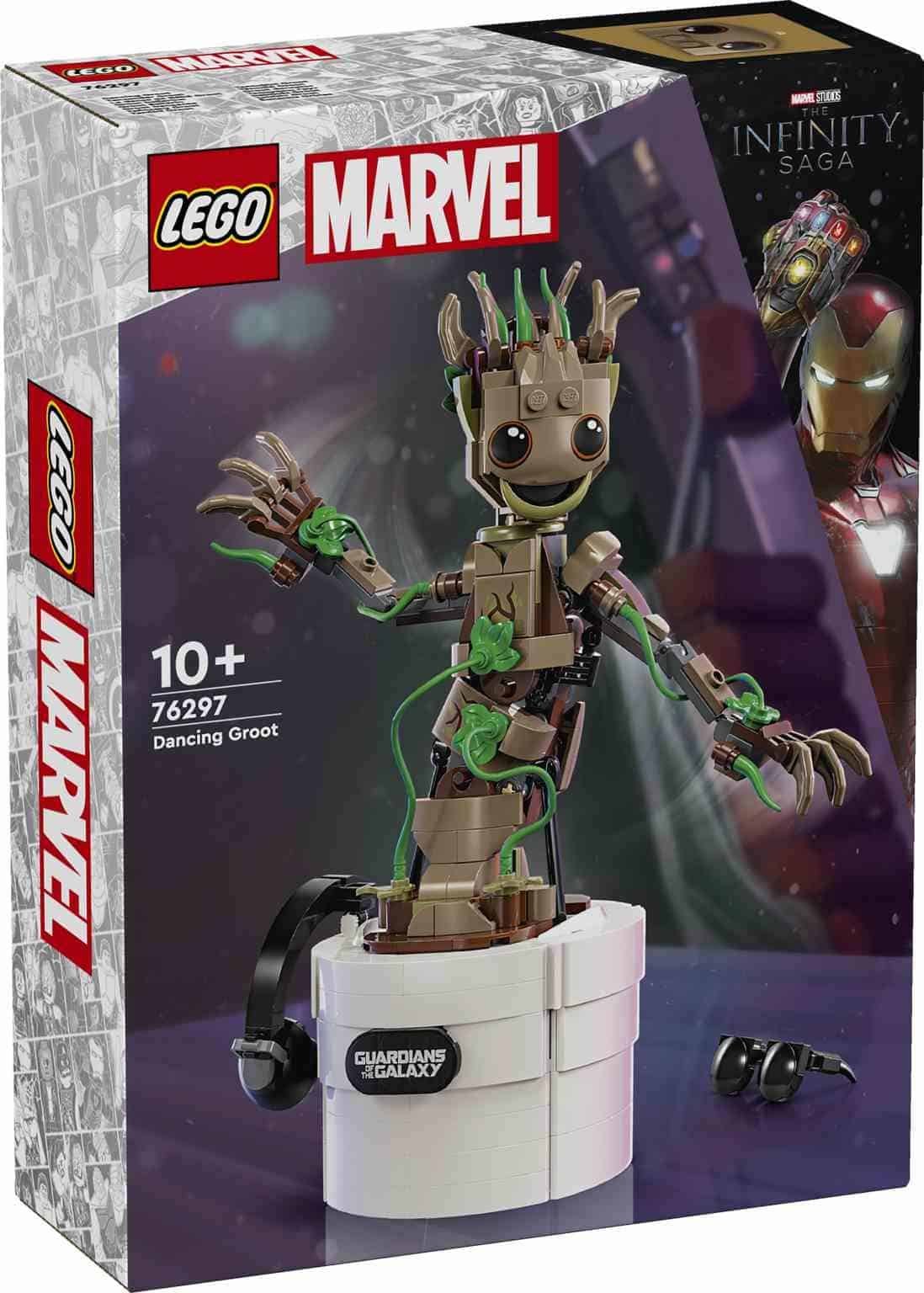 Groot Bailarín LEGO® Marvel (76297) es un juguete construible basado en Guardianes de la galaxia con una función de baile interactiva. Es fantástico como regalo para niños y niñas a partir de 10 años y para fans de Groot, el personaje Marvel, o delos superhéroes y los juguetes LEGO construibles. Este juguete de construcción de Groot cuenta con cabeza móvil y brazos articulados. Cuando los peques giran la manivela situada en la parte posterior de la maceta, Groot empieza a bailar. La figura pued e adaptarse con hojas adicionales, auriculares construibles y gafas de sol; además, los niños pueden personalizar la maceta de Groot colocando 1 de 3 placas de identificación en la parte frontal (incluida una relacionada con la serie para televisión Yo soy Groot). Todos estos accesorios se pueden guardar en el compartimento integrado en la maceta. Para pasarlo aún mejor construyendo, la app LEGO Builder permite a los peques acercar y girar versiones 3D de sus modelos y seguir sus progresos.