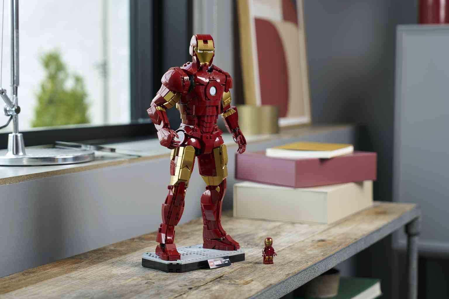 La figura de Iron Man de este set de construcción mide aproximadamente 38 cm de altura, 21 cm de anchura y 11 cm de profundidad.