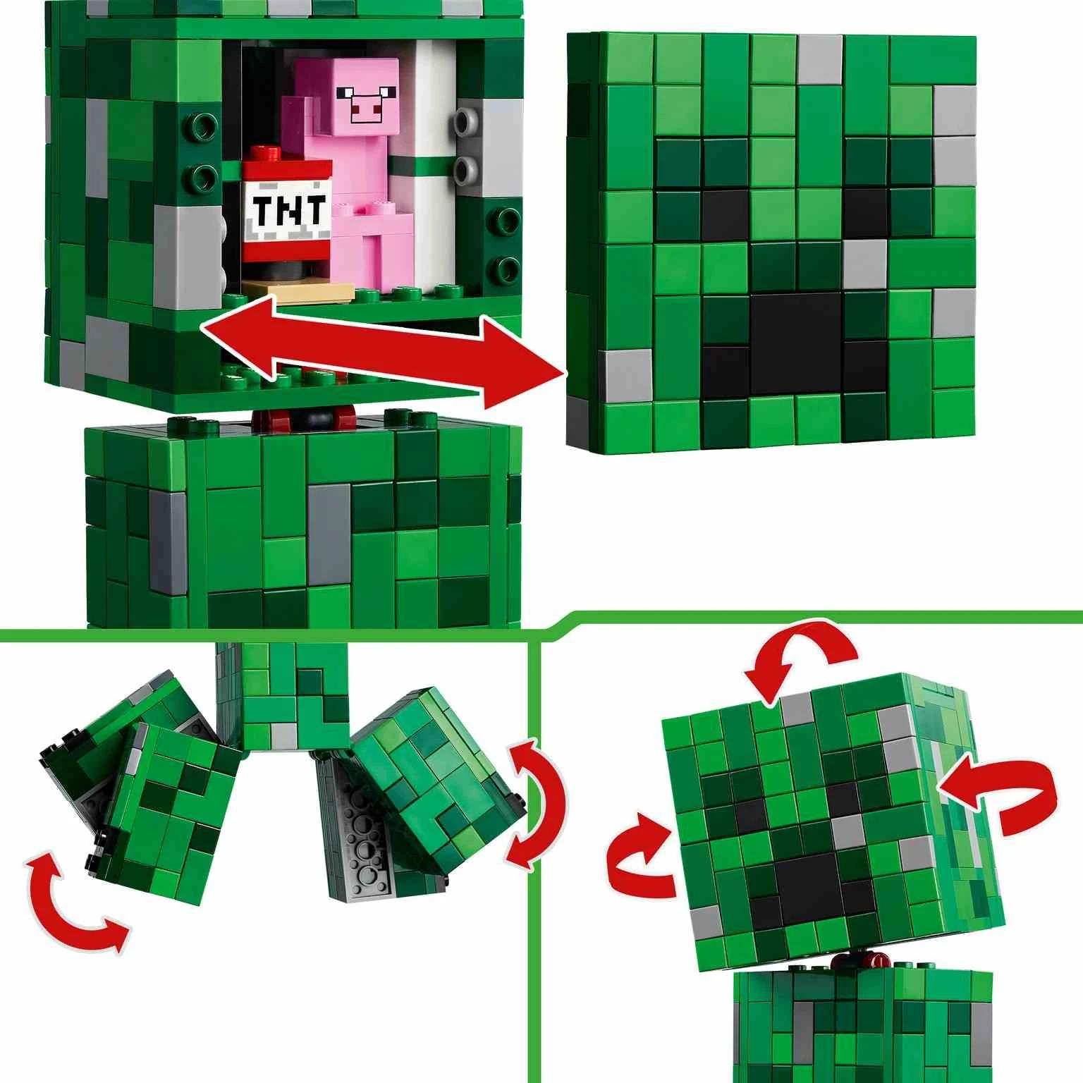 El Creeper™ LEGO® Minecraft® (21276) es una gran figura de acción articulada que los peques pueden construir, usar en sus juegos y exponer. Esta emblemática pieza de decoración para el cuarto de juegos es ideal como regalo de cumpleaños o solo porque sí para niños y niñas a partir de 10 años con pasión por Minecraft. Este juguete construible, una recreación del inconfundible Creeper del videojuego Minecraft, mide aproximadamente 21 cm de altura. Cuenta con 4 patas móviles y una cabeza articulada que gira de lado a lado y se inclina hacia arriba y hacia abajo. La parte frontal de la cabeza de la figura LEGO Minecraft del Creeper se puede quitar para descubrir un espacio en el interior donde hay un Creeper con el diseño de la primera versión y un elemento que representa dinamita. Combina el juego físico con la diversión digital que ofrece LEGO Builder, una intuitiva app que los constructores pueden usar para acercar y girar sus modelos en 3D y consultar su progreso. Contiene 665 piezas.