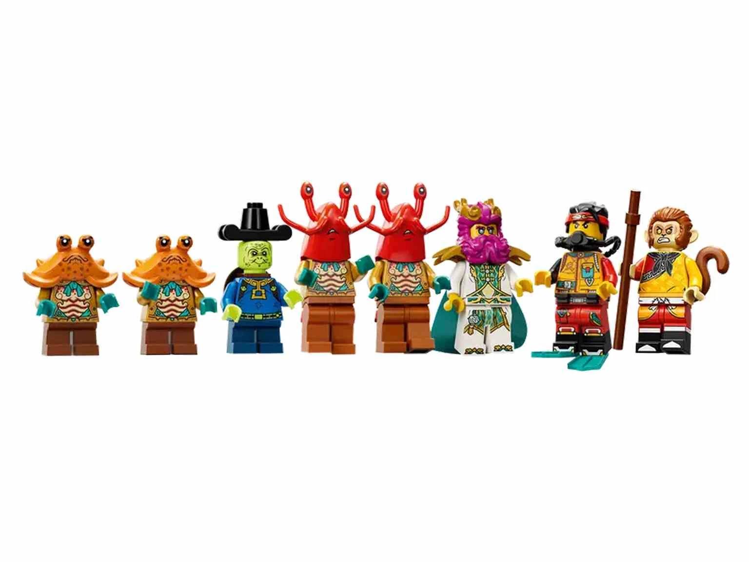 8 minifiguras LEGO®: Monkie Kid, Monkey King, el Dragón del Este, el Ministro Tortuga, 2 Generales Cangrejo y 2 Soldados Gamba para divertirse interpretando la acción, así como armas, un pergamino oculto y otros elementos de iniciación al juego