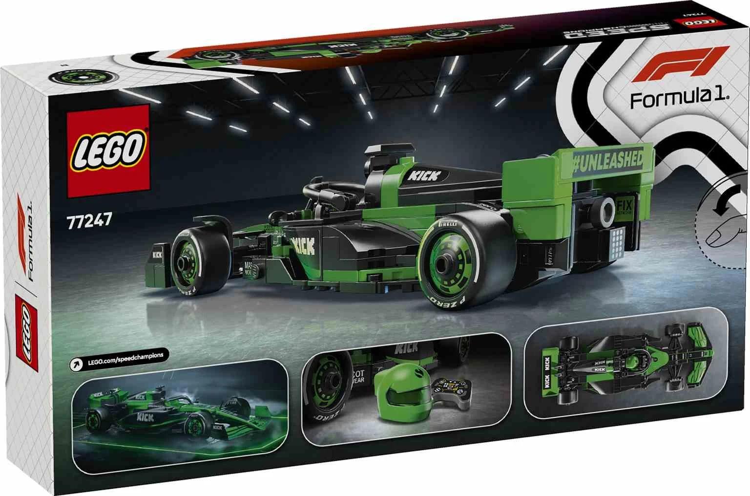 Los niños y las niñas a partir de 10 años pueden construir, exponer y coleccionar el Coche de Carreras KICK Sauber F1® Team C44 LEGO® Speed Champions (77247), además de jugar con este vehículo de juguete. La maqueta del coche de F1 para peques y coleccionistas de coches adultos recrea detalles de diseño del modelo que compitió en la temporada 2024 del Campeonato Mundial de Fórmula 1. Este coche de F1 cuenta con habitáculo (al que accedes levantando el halo), alerón trasero, suspensión de doble horquilla, pegatinas de los patrocinadores y neumáticos traseros más anchos con la inscripción “Pirelli”. Viene con una minifigura de un piloto con traje de competición de la escudería KICK Sauber F1 Team y casco con alas. Los sets LEGO Speed Champions ofrecen a niños y aficionados al automovilismo la oportunidad de construir maquetas de algunos de los vehículos más icónicos del mundo, incluidos otros coches de Fórmula 1 (a la venta por separado) participantes en la temporada 2024 del campeonato.