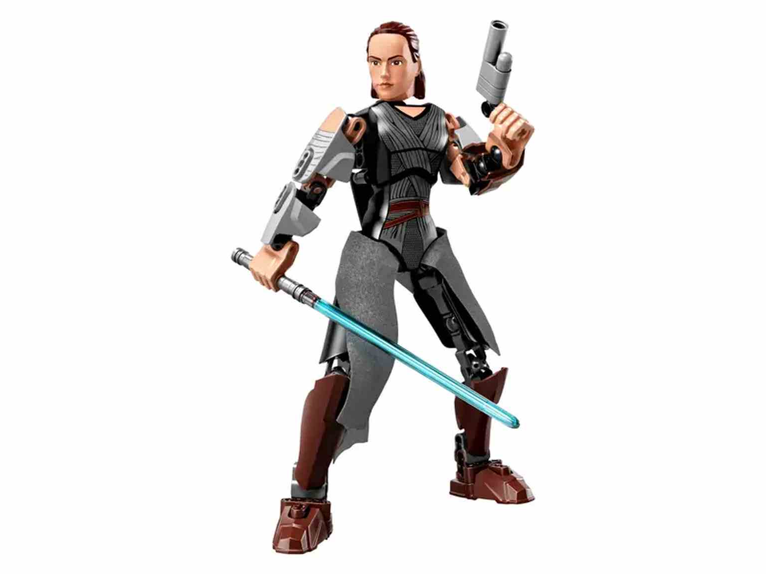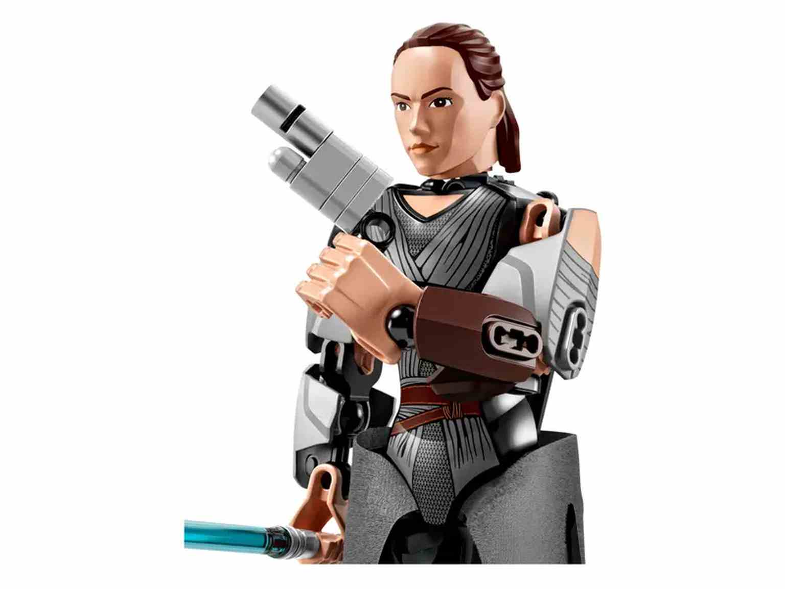 ¡Despierta el poder de la Fuerza con esta versión para construir de Rey, la gran heroína! Colócala en tu postura de combate favorita y equípala con su espada de luz azul y su pistola bláster. ¡Si se mete en algún lío, gira la rueda para asestar un buen golpe a los soldados de la Primera Orden!