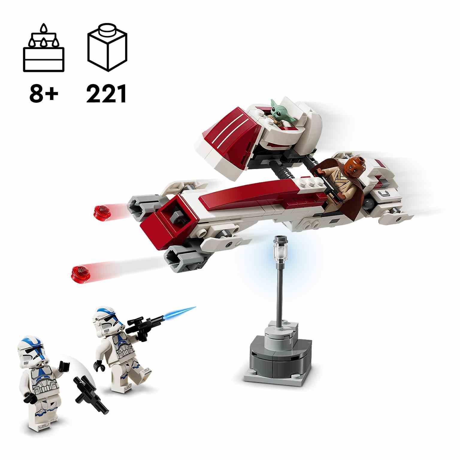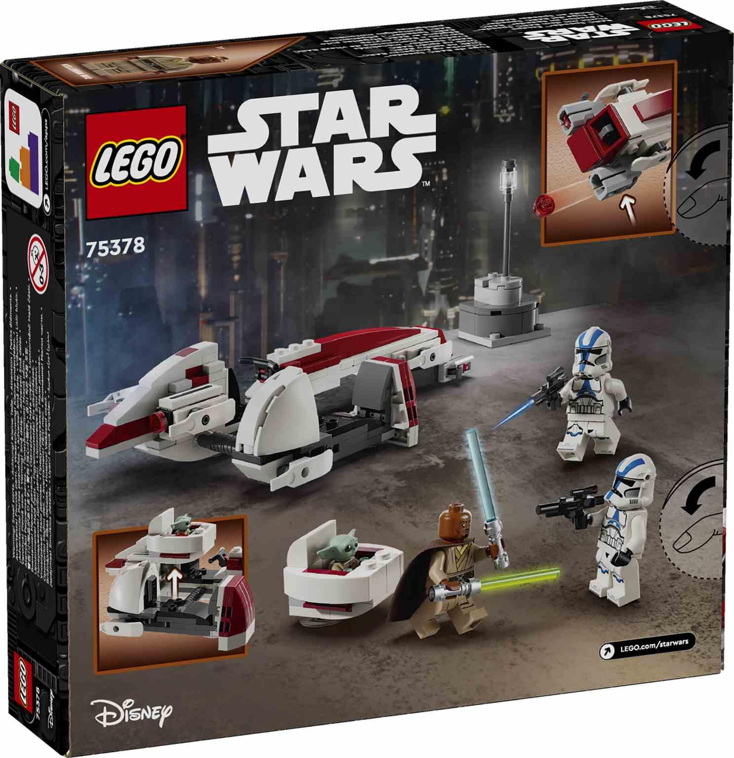 Revive la escena retrospectiva de la huida en speeder BARC que aparece en la temporada 3 de Star Wars: The Mandalorian con este exclusivo set LEGO® Star Wars™ (75378). Esta sensacional idea de regalo para niños, niñas, fans y coleccionistas de Star Wars a partir de 8 años incluye una moto speeder con sidecar LEGO de juguete para construir. El speeder cuenta con cabina para una minifigura y 2 cañones que disparan, y el cochecito flotante de Grogu se conecta al sidecar desmontable. Además, este set contiene un pequeño modelo escenográfico y 3 minifiguras LEGO: Kelleran Beq (con una espada láser azul y otra verde) y 2 soldados clon de la 501 (con blásteres), además de una figura LEGO de Grogu (conocido por los fans como “Baby Yoda”) para fomentar el juego creativo. Este juguete de aventuras de fantasía viene con instrucciones paso a paso. Los niños también pueden descargar la app LEGO Builder y usar sus herramientas para disfrutar de una experiencia de construcción aún más divertida.