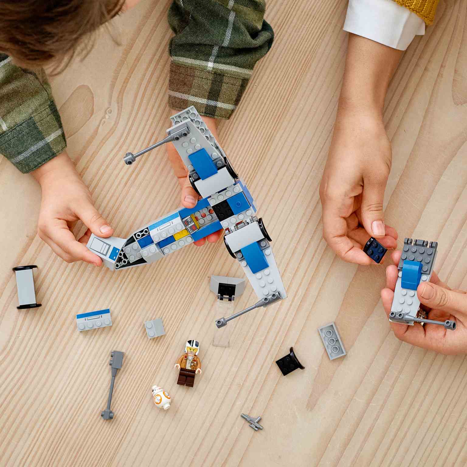 Este caza estelar construible de juguete contiene una minifigura LEGO® de Poe Dameron con una pistola bláster, además de una figura LEGO del droide BB-8 para pasarlo genial jugando a interpretar con creatividad.