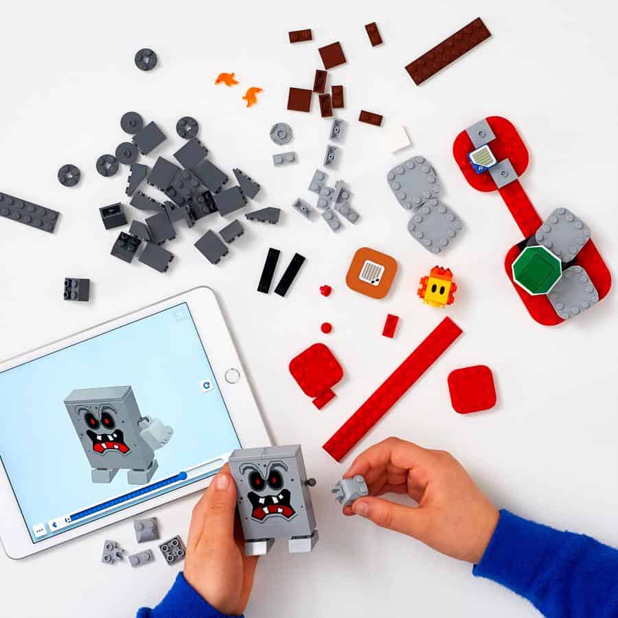 • A los peques les encantará ver y escuchar las diferentes reacciones de LEGO® Mario™ cuando se encuentra con cada enemigo y gana una lluvia de monedas digitales por hacer trucos después de derrotar al Roco y activar el interruptor P.