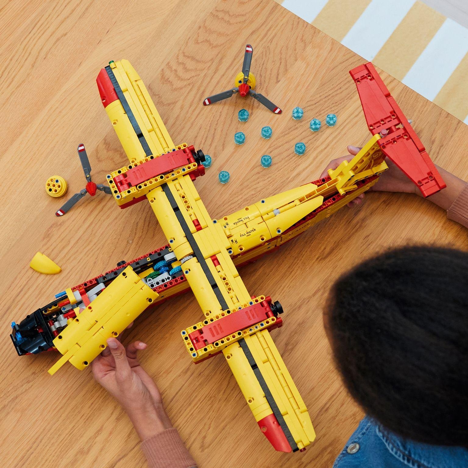 Regala a tu peque de 10 años o más un fantástico desafío de construcción: el set LEGO® Technic Avión de Bomberos (42152). Este juguete viene repleto de características inspiradas en los aviones de bomberos reales para que pueda ver cómo se complementan todas sus funciones durante las operaciones de extinción. Un desafío para compartir El proyecto os ofrece a tu joven constructor y a ti la oportunidad de disfrutarlo juntos. Le espera mucho por descubrir a la vez que hace girar las hélices, retrae y despliega el tren de aterrizaje y observa cómo se mueven los alerones de cola. También le encantará abrir la compuerta para descargar los elementos LEGO que representan agua mientras aprende cómo sofocan los incendios los aviones anfibios de verdad. Una creativa iniciación al mundo de la ingeniería Los modelos LEGO Technic reproducen movimientos y mecanismos realistas que permiten a los constructores y las constructoras explorar el universo de la ingeniería de un modo accesible y práctico.