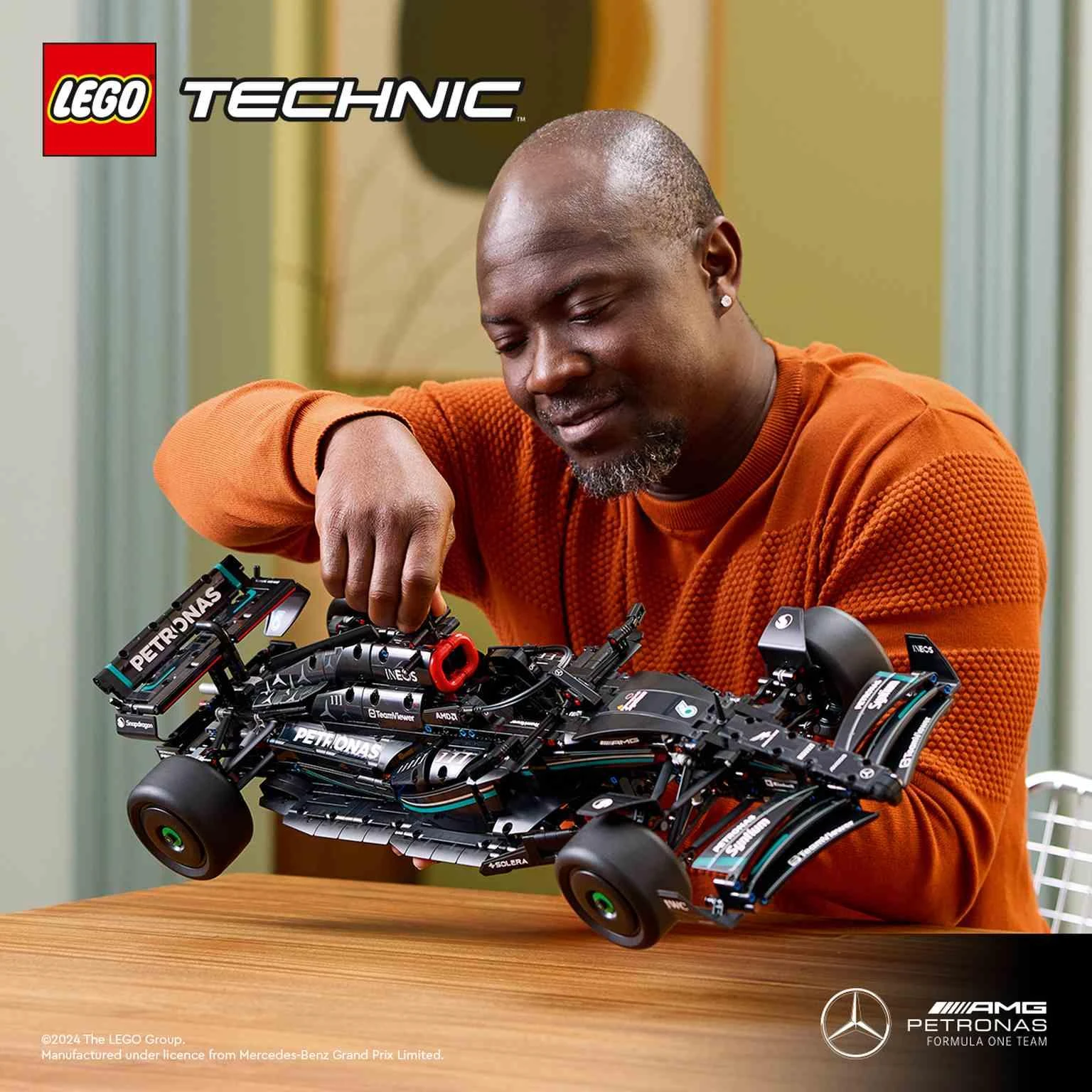 Este kit de construcción LEGO® Technic para adultos de una maqueta de coche a escala es un impresionante regalo que los fans de Mercedes en F1 podrán construir y exponer en casa o en la oficina.