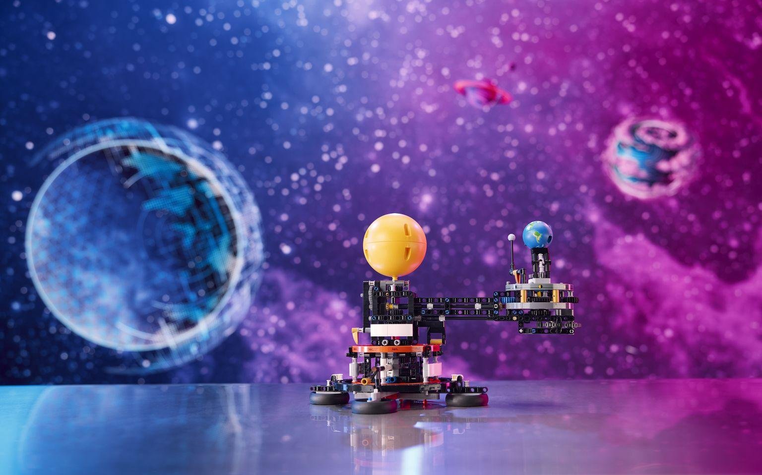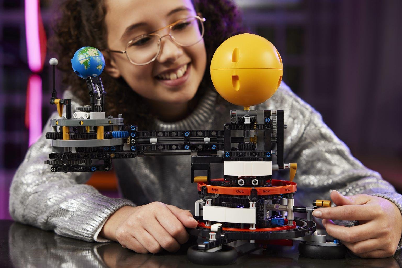 El set LEGO® Technic Planeta Tierra y Luna en Órbita, compuesto por modelos giratorios de la Tierra, el Sol y la Luna, es perfecto para pequeños entusiastas de los juegos inspirados en el espacio y los juguetes de astronomía.