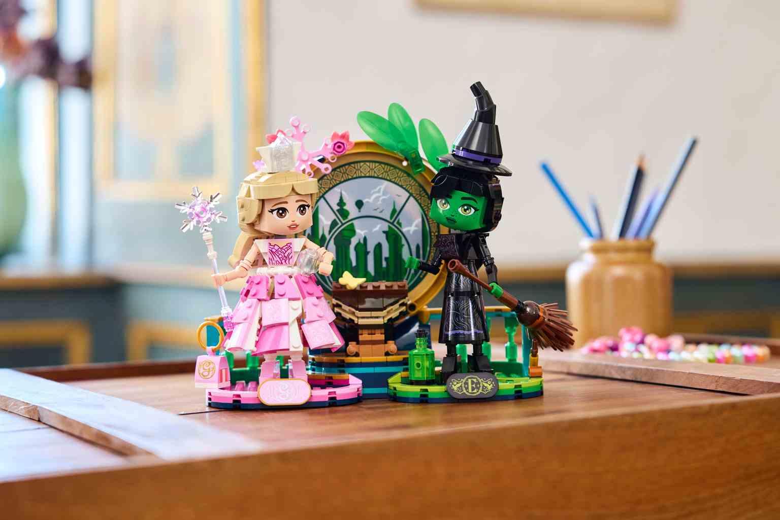 El juguete incluye montones de elementos de la película para ayudar a los peques a contar sus historias creativas, como una ventana con vistas a la tierra de Oz, la escoba de Elphaba, el bolso y la corona de Glinda, y una base para convertir estas figuras en piezas de exposición, para adornar y decorar el dormitorio infantil. El set también está disponible en la app LEGO Builder.